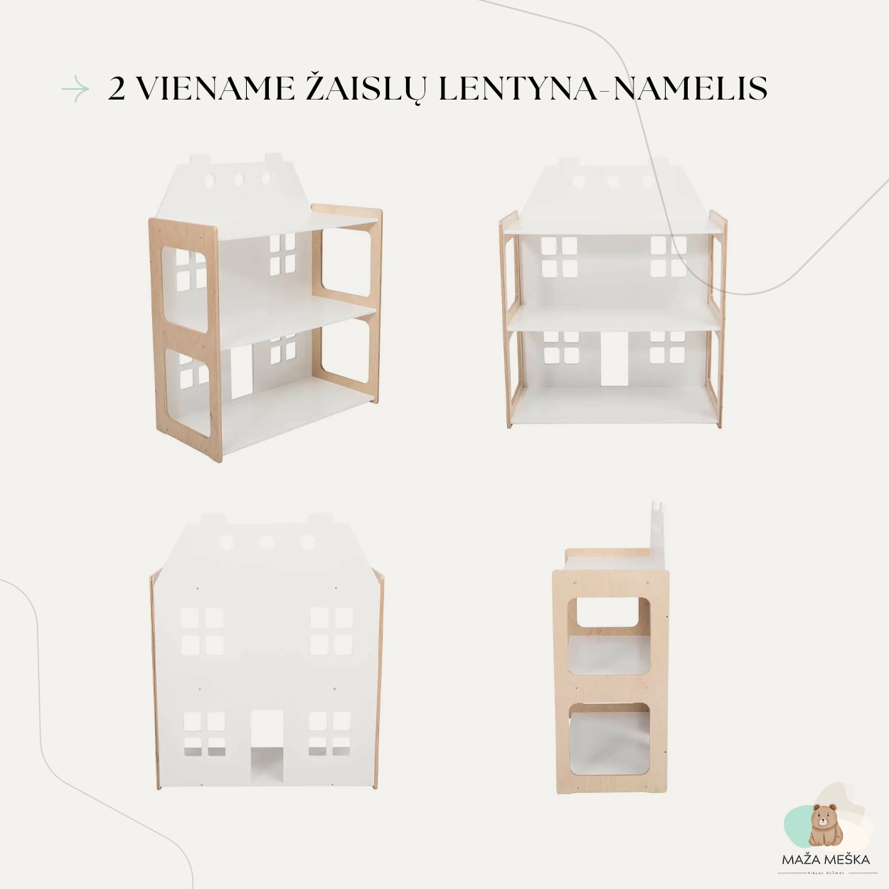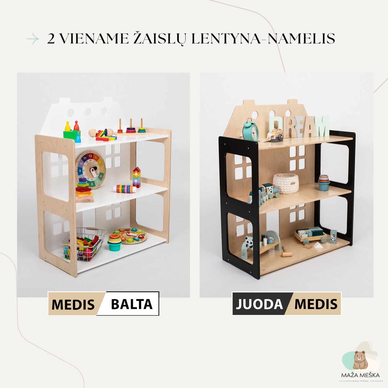 Šios lentynos yra sukurtos šeimos, kuri tiki, kad kokybiška aplinka padeda ugdyti savarankiškumą. Tai yra baldai, kurie ne tik papuoš vaikų kambarius, bet ir skatins jų augimą, mokymąsi ir nepriklausomybę. Naudojamos tik aukščiausios kokybės medžiagas, kad užtikrintų, jog visi baldai yra saugūs, ilgaamžiai ir ekologiški. Kiekviena detalė apgalvota su meile ir rūpesčiu, tam, kad šie baldai taptų neatsiejama Jūsų šeimos dalimi ir padėtų Jūsų vaikams augti laisvai ir užtikrintai.