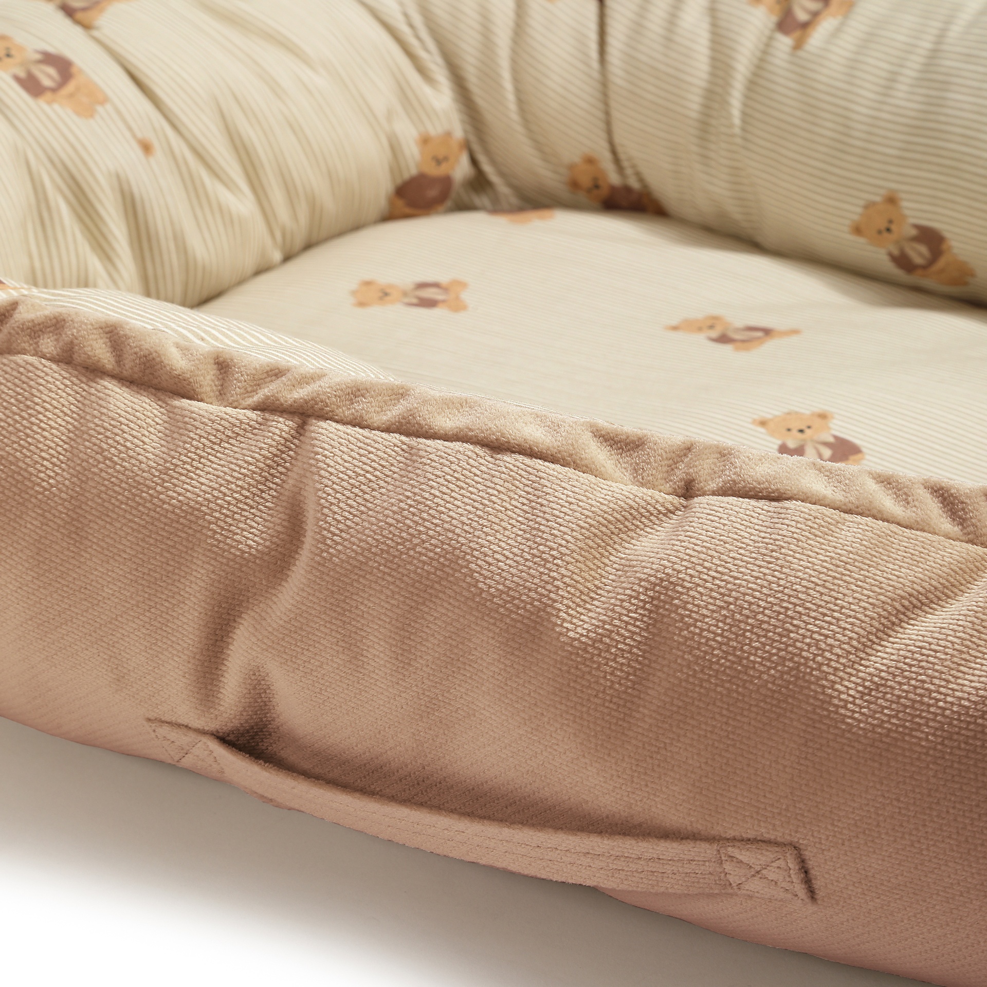 Aksominis Lizdelis MEŠKUTIS – tai daugiafunkcis kūdikio lizdelis, sukurtas su meile vaikams. Jame jūsų mažylis visada turi savo draugišką vietelę žaisti, miegoti ir ilsėtis, o tėvai gali stebėti kiekvieną akimirką. Lizdelis suteikia saugią erdvę, kurioje kūdikis gali praleisti laiką šalia jūsų, dalyvauti kasdieninėse veiklose, tokiose kaip darbas, poilsis ant sofos, vonelė ar net lauko pramogos.