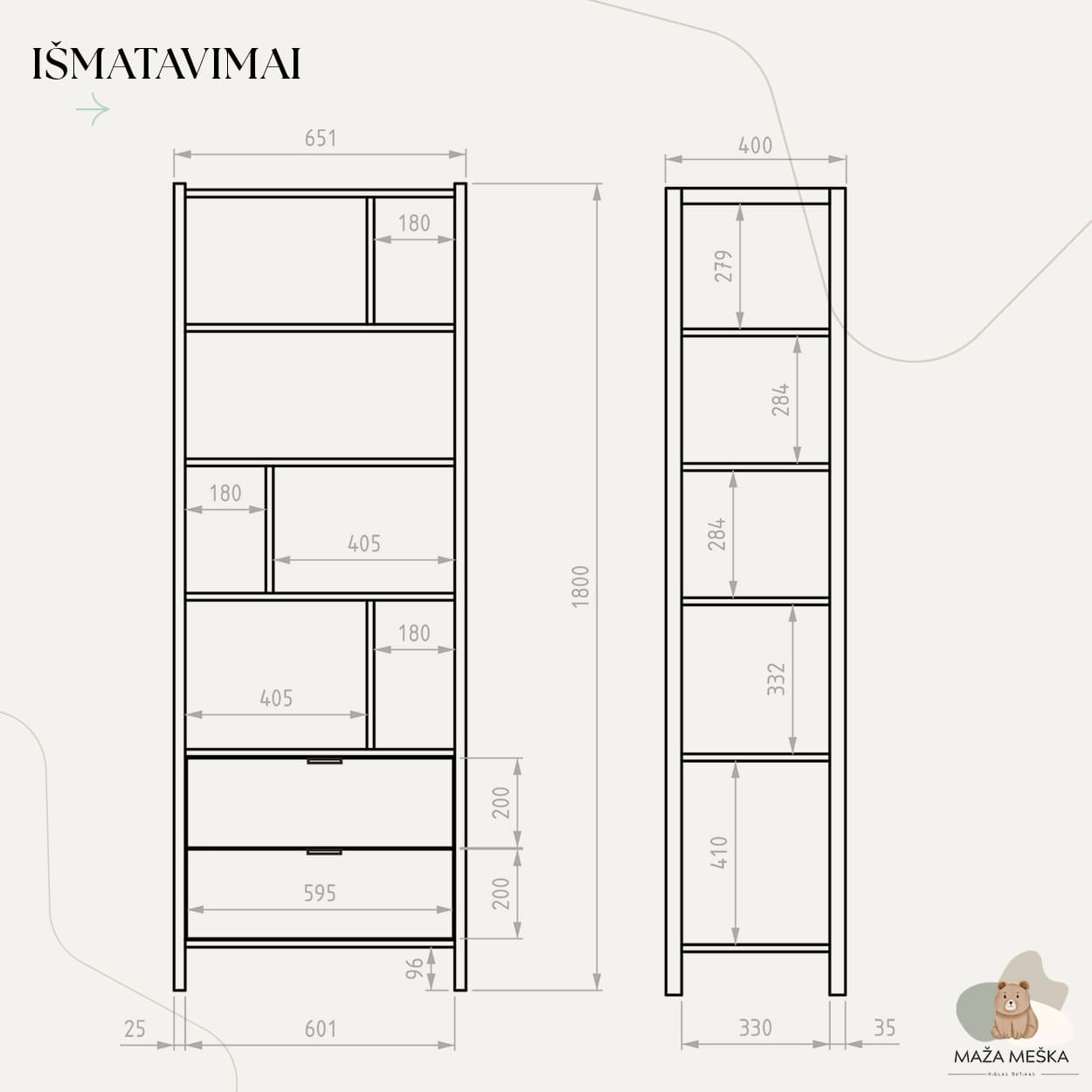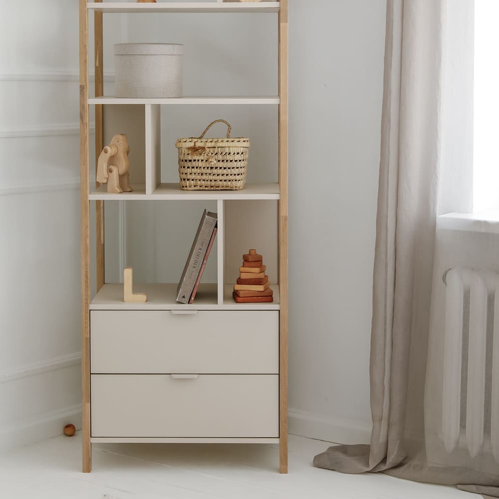 Vaikas pats pasiekia savo knygas ir žaislus, mokosi tvarkingumo ir savarankiškumo.