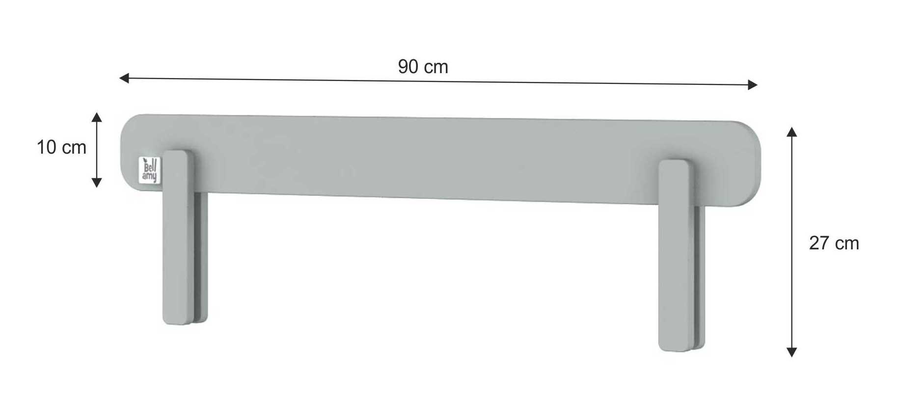 Apsaugos išmatavimai: ilgis – 90 cm, bendras aukštis – 27 cm, gylis – 10 cm. Tai optimalus dydis, tinkantis tiek mažesnėms, tiek standartinėms vaikiškoms lovoms.