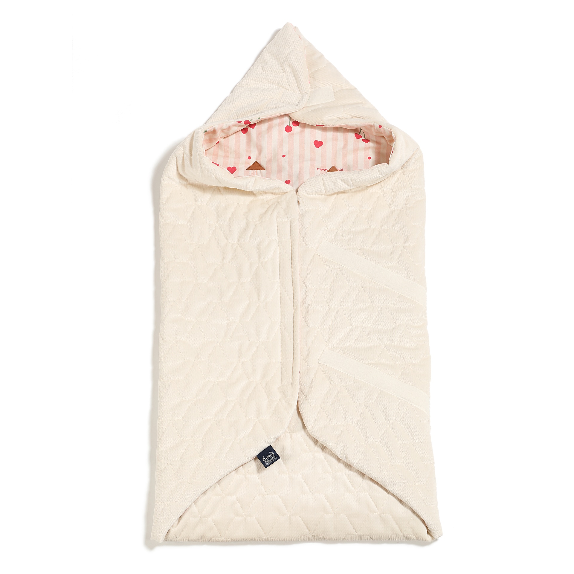 Išorėje minkštas aksomas, viduje pralaidus ir malonus liesti organinės medvilnės audinys.