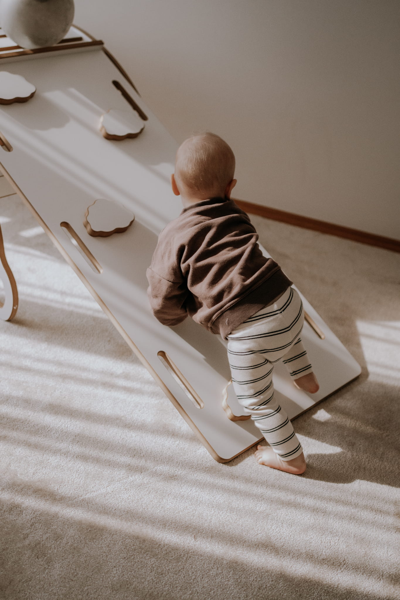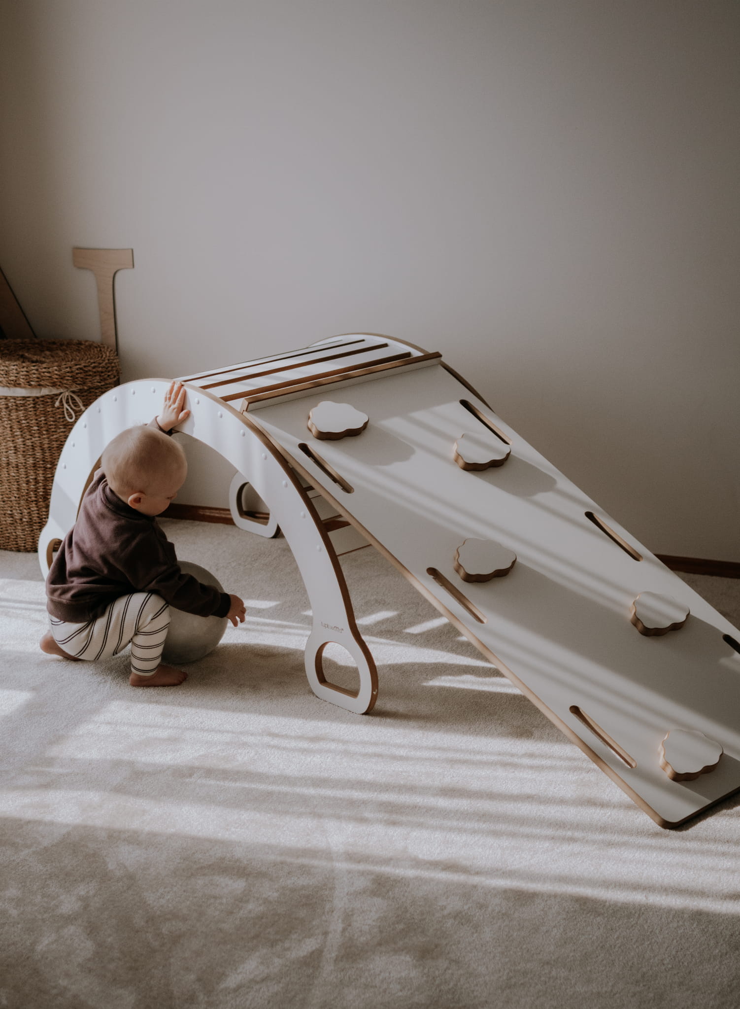 Pridėta čiuožykla suteikia dar daugiau funkcionalumo. Viena jos pusė skirta čiuožimui, kita – su sugrubinta sienele – virsta laipiojimo lenta. Jei ją uždėsite ant rokerio – turėsite balansavimo takelį, lavinantį koordinaciją ir pusiausvyrą.