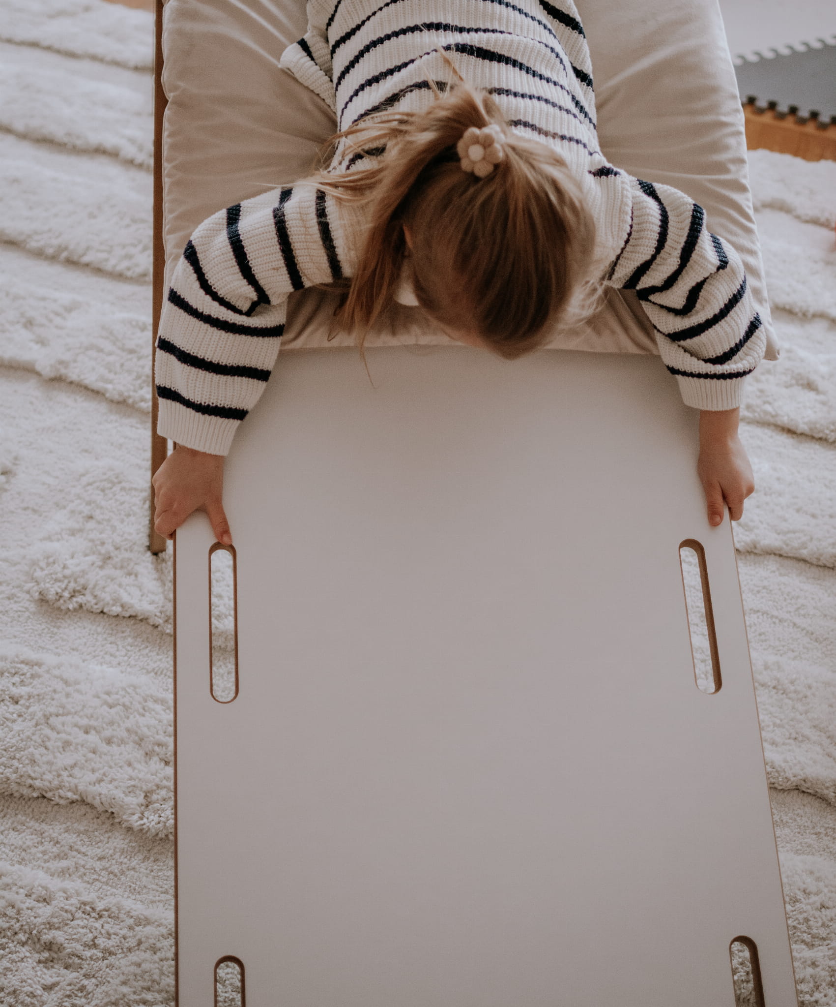 Aktyviam žaidimui. Pastatytas „aukštyn kojom“, jis tampa laipiojimo konstrukcija, lenktynių tuneliu ar net slaptu bunkeriu!