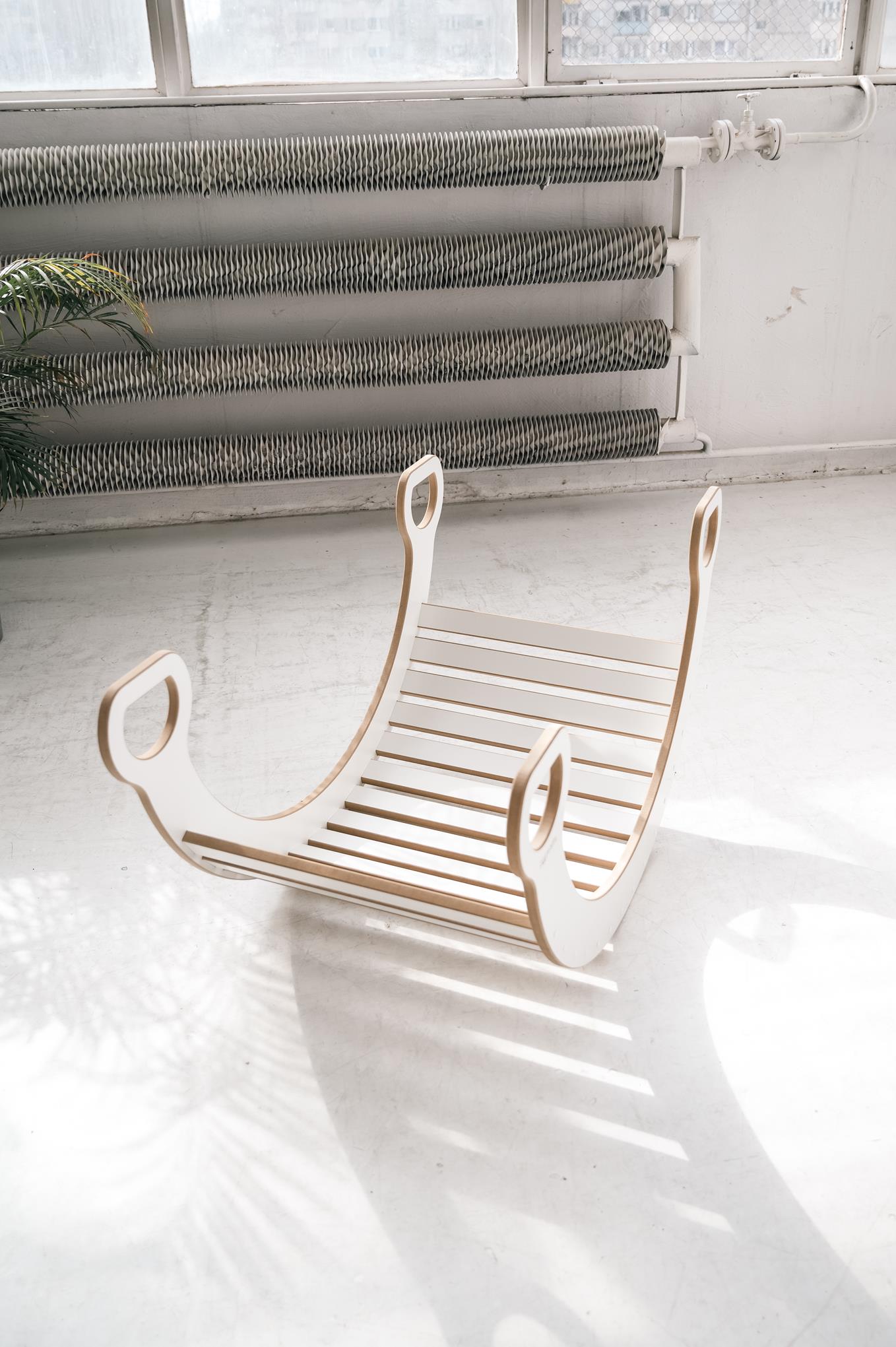 Universalus Montessori baldas – rokeris, čiuožykla ir laipynė.