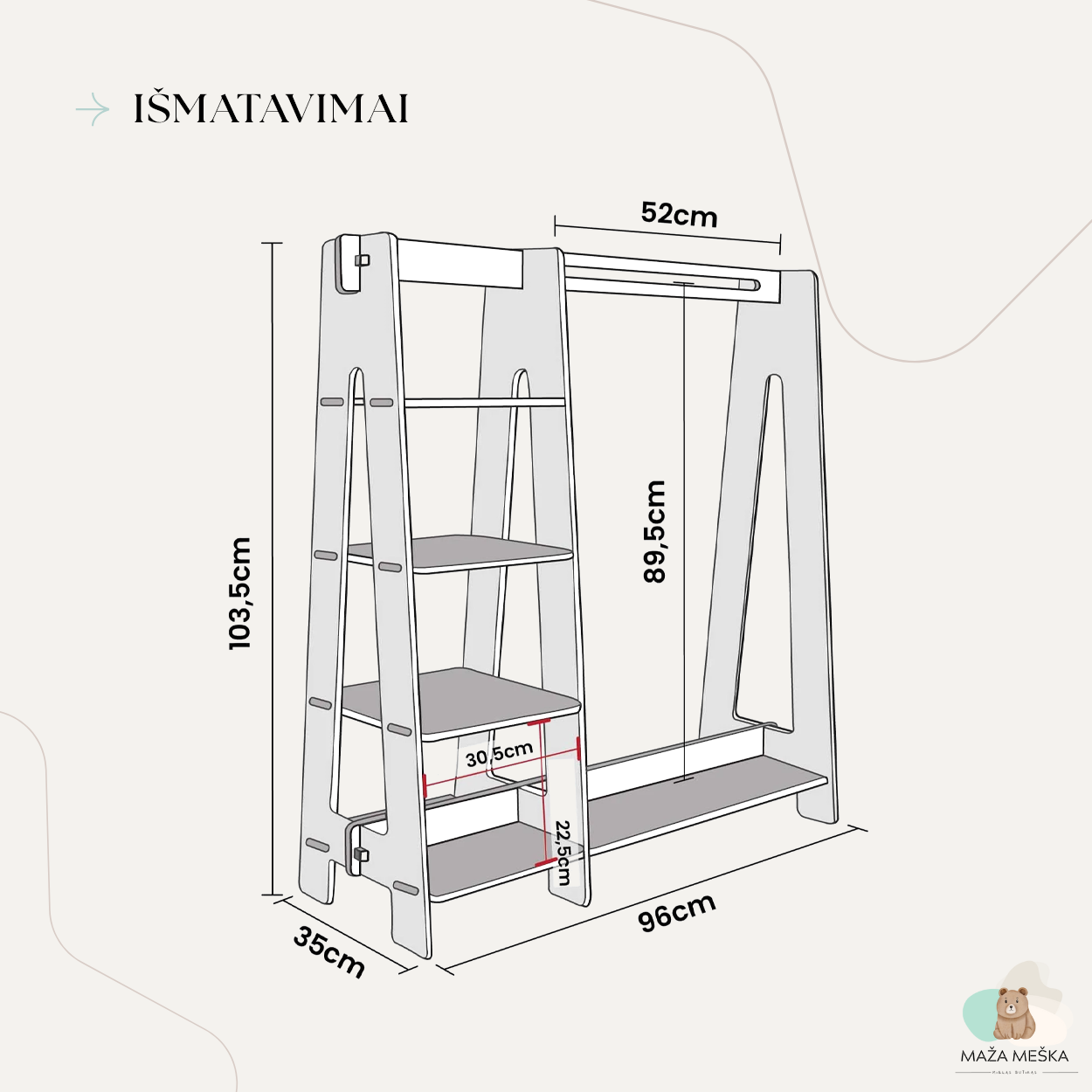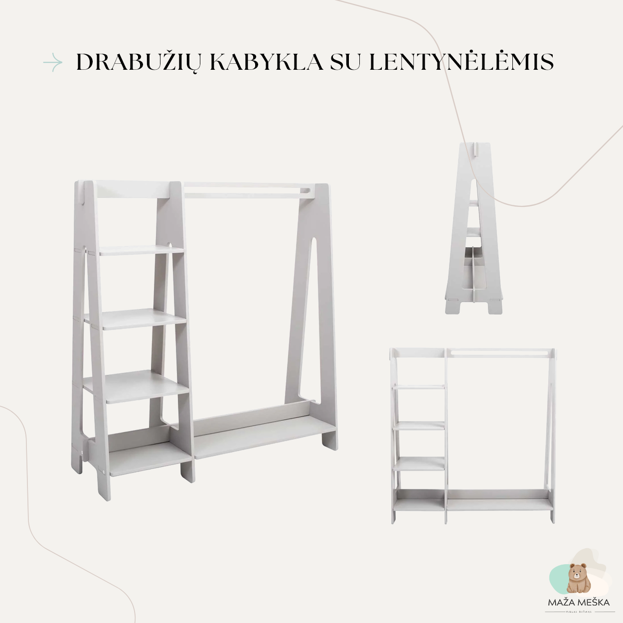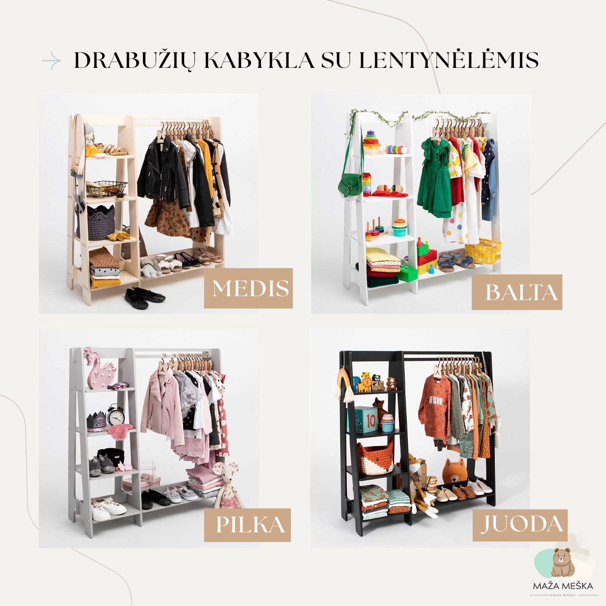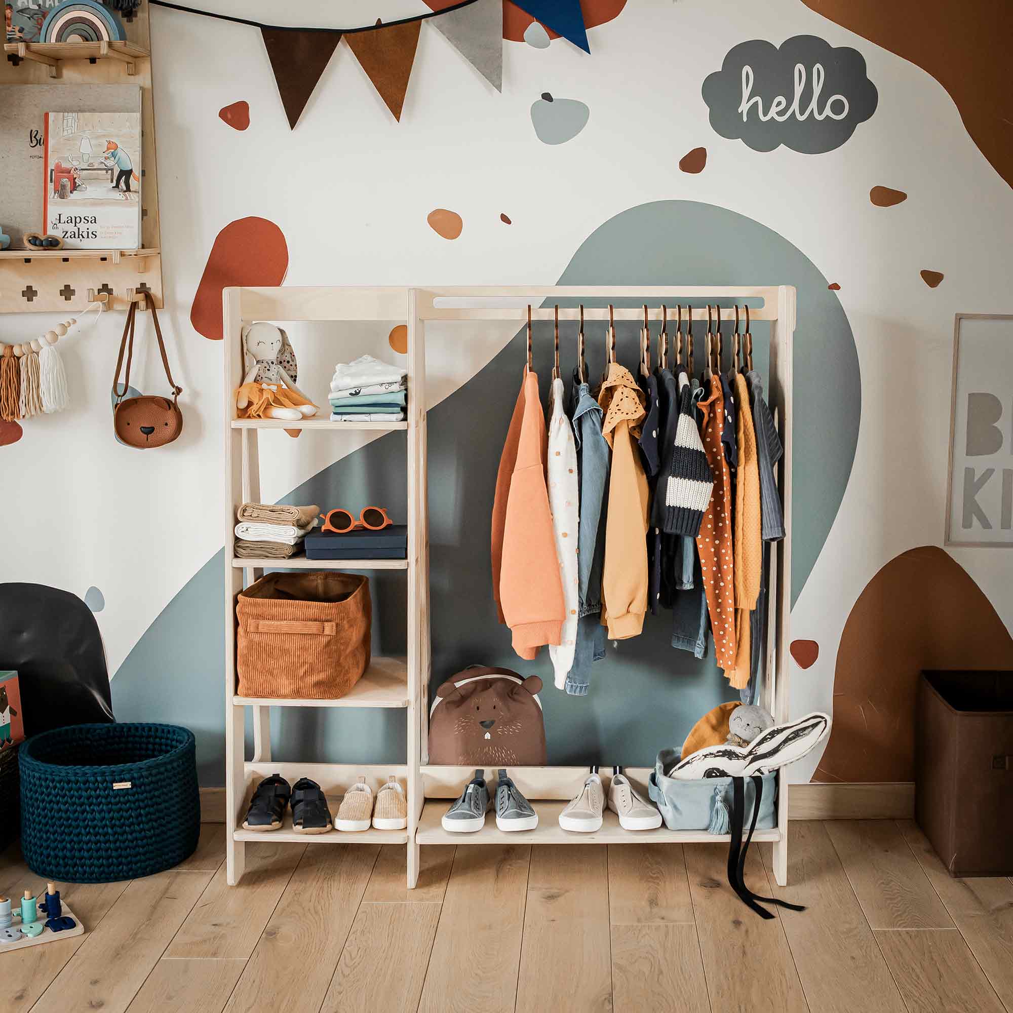 Tuk tuk! Į mūsų parduotuvę pasibeldė dar daugiau naujienų! Montessori įkvėpta drabužių kabykla su lentynėlėmis – ne tik vieta drabužiams, bet ir puikus būdas mokytis savarankiškumo!