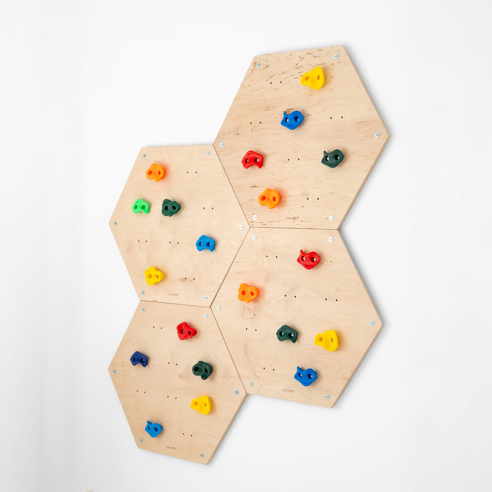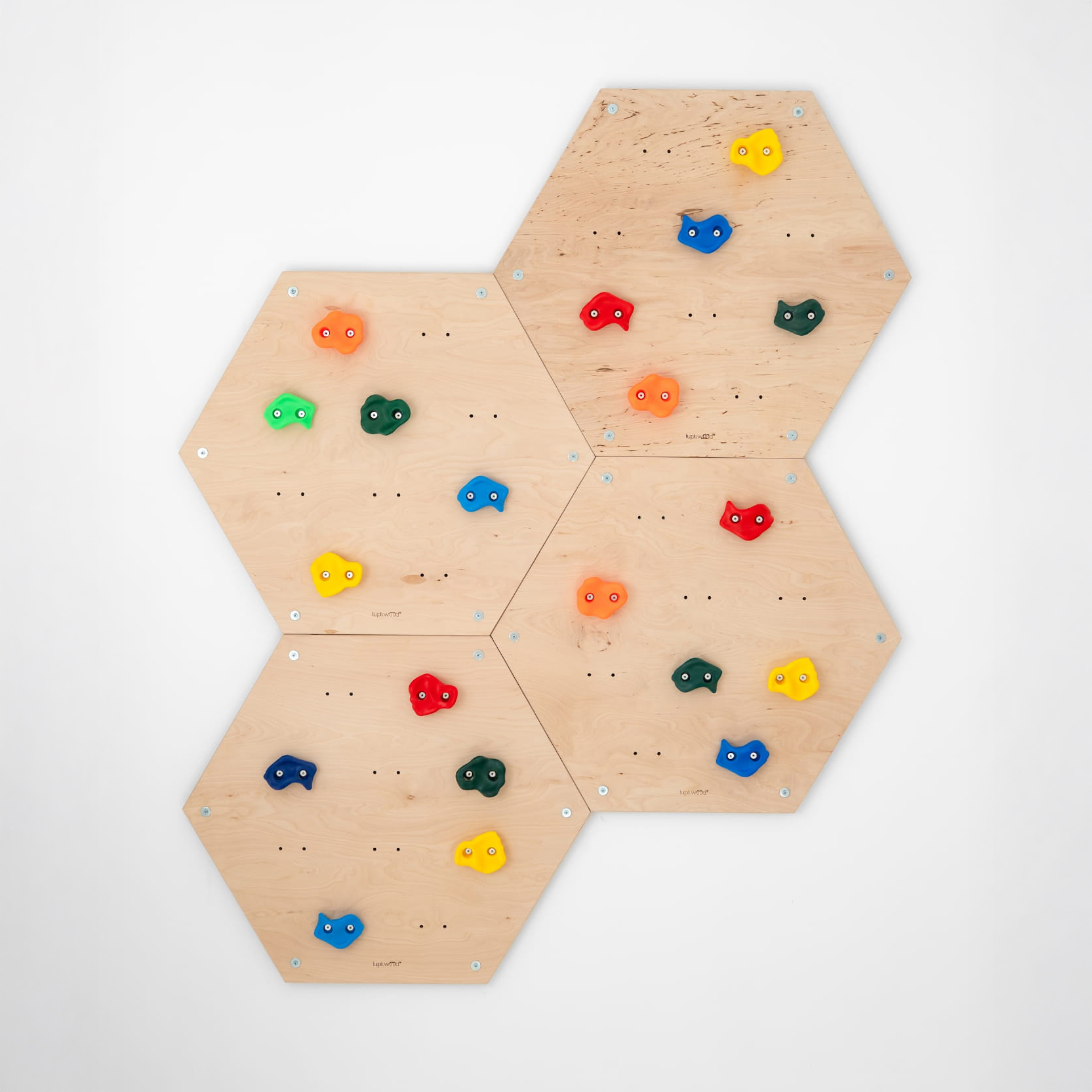 Modulinė konstrukcija leidžia sienelę laisvai pritaikyti pagal erdvę ir vaiko poreikius. Galite pradėti nuo vieno HEKSAGON modulio, o laikui bėgant – plėsti sienelę, kurti didesnes figūras, sudėtingesnius maršrutus ar net visą laipiojimo zoną. Sienelė „auga“ kartu su vaiku – nuo pirmųjų laipiojimo bandymų iki rimtesnių iššūkių.