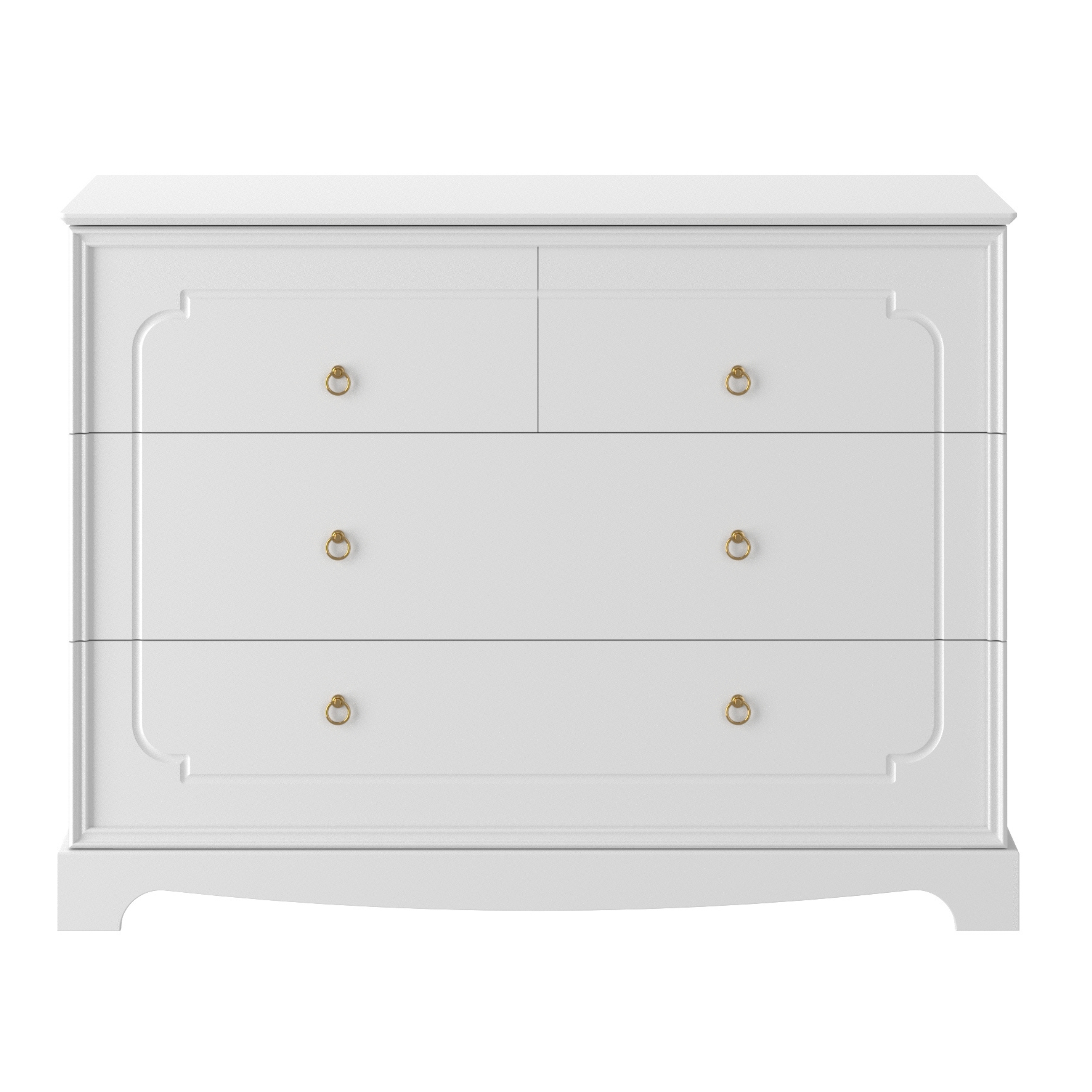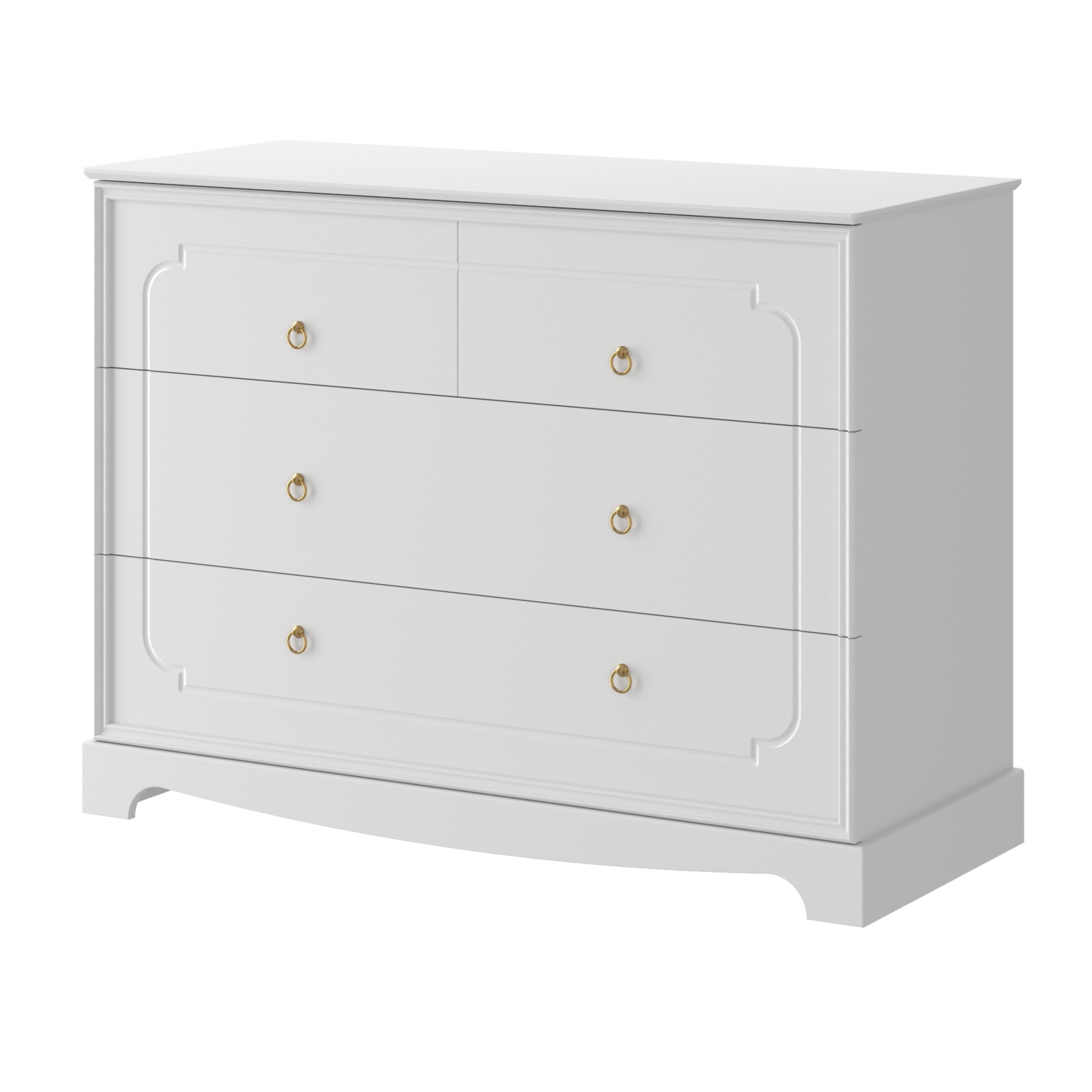 KARALIŠKA Nesenstančios Baltos 4 Stalčių Komoda – tai nepriekaištingas dizaino ir funkcionalumo derinys, sukurtas tiek vaikų kambariui, tiek tėvų miegamajam ar bendrai erdvei. Klasikinės formos, subtilūs dekoratyvūs akcentai ir patogios rankenėlės suteikia šiam baldui išskirtinį charakterį. 🤍