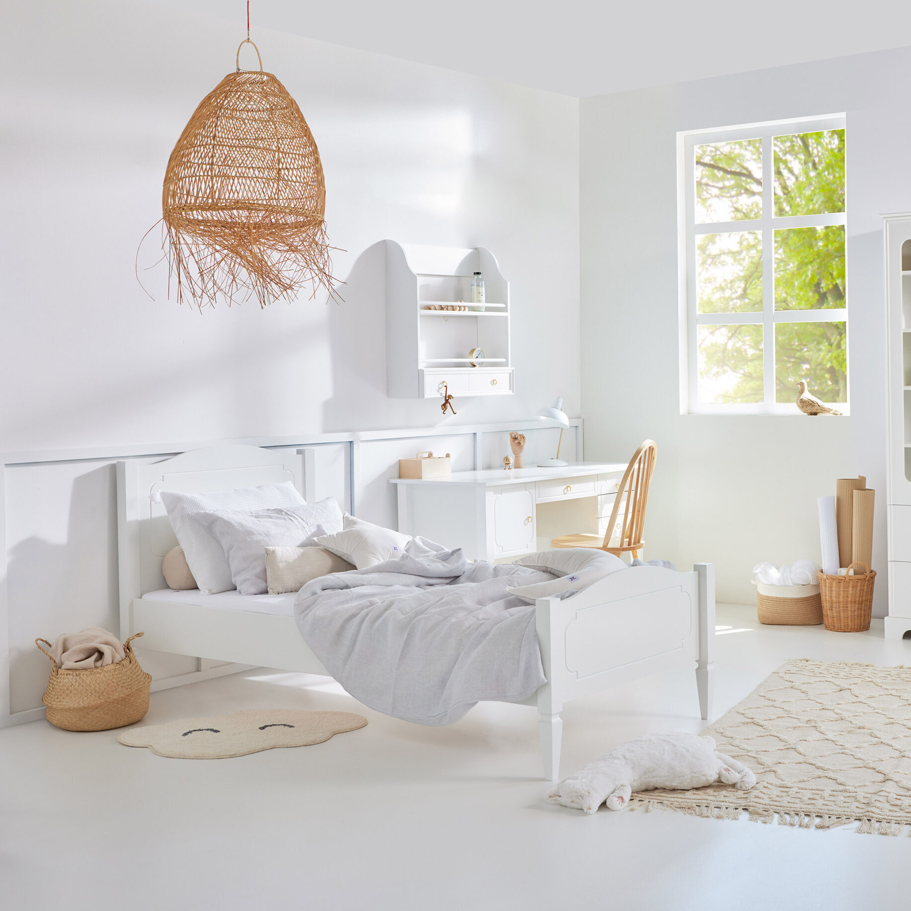 Subtilios formos, rafinuoti apvadai ir nesenstanti balta spalva kuria elegantišką atmosferą, kuri tiks tiek vaikų kambariui, tiek paauglių erdvei. Lova ne tik atrodo įspūdingai, bet ir pasižymi visais būtinais funkcionalumo privalumais. 🤍