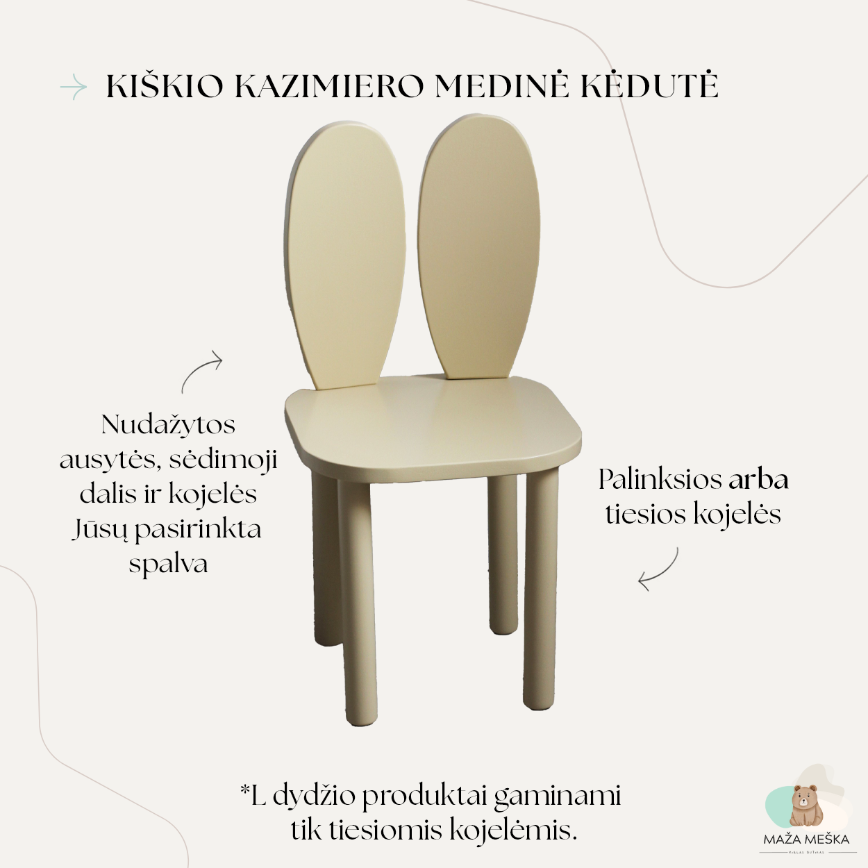 | Kėdutės aukštis | L – 35cm, M – 30cm, S – 27cm |