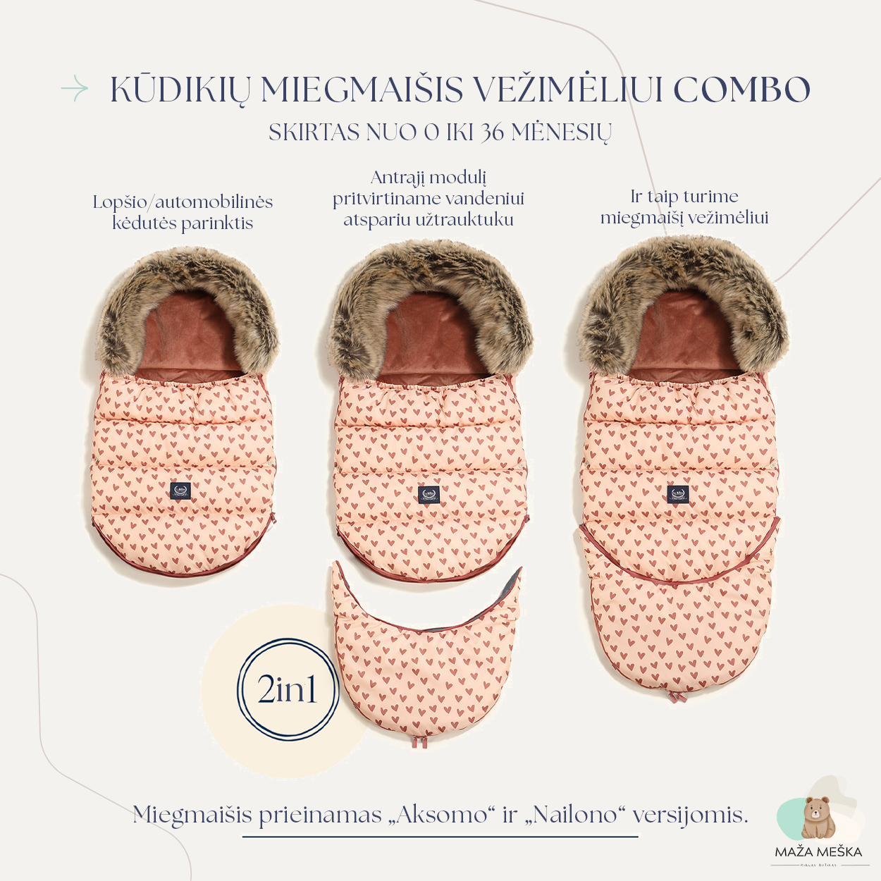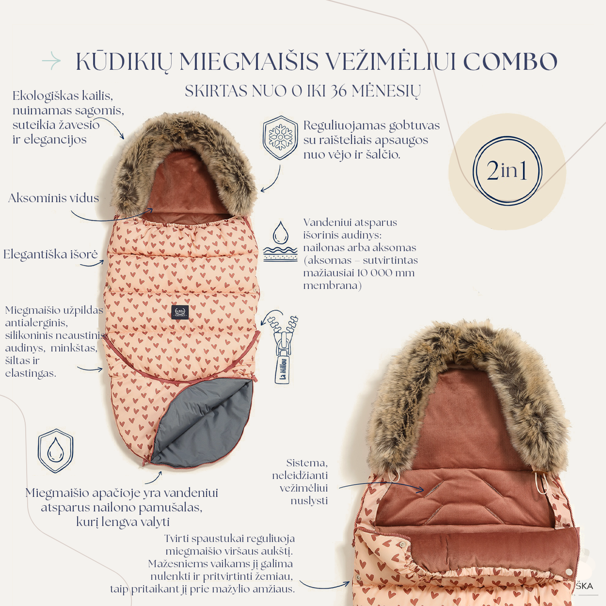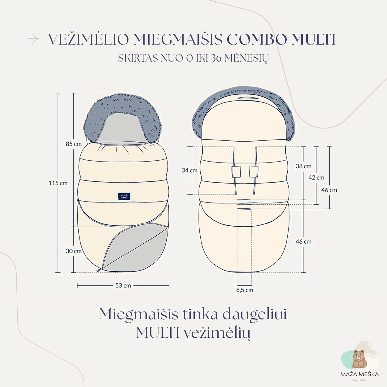 Kūdikių miegmaišis vežimėliui Combo Multi BORUŽĖLĖ – tai modulinis žiemos miegmaišis, sukurtas jūsų mažyliui nuo gimimo iki 3 metų. Jis yra universalus ir pritaikytas tiek lopšiui, tiek vežimėliui, o prireikus gali būti naudojamas kaip miegmaišis rogutėms. Šiltas, jaukus ir lengvas – idealus pasirinkimas šaltoms žiemos dienoms.