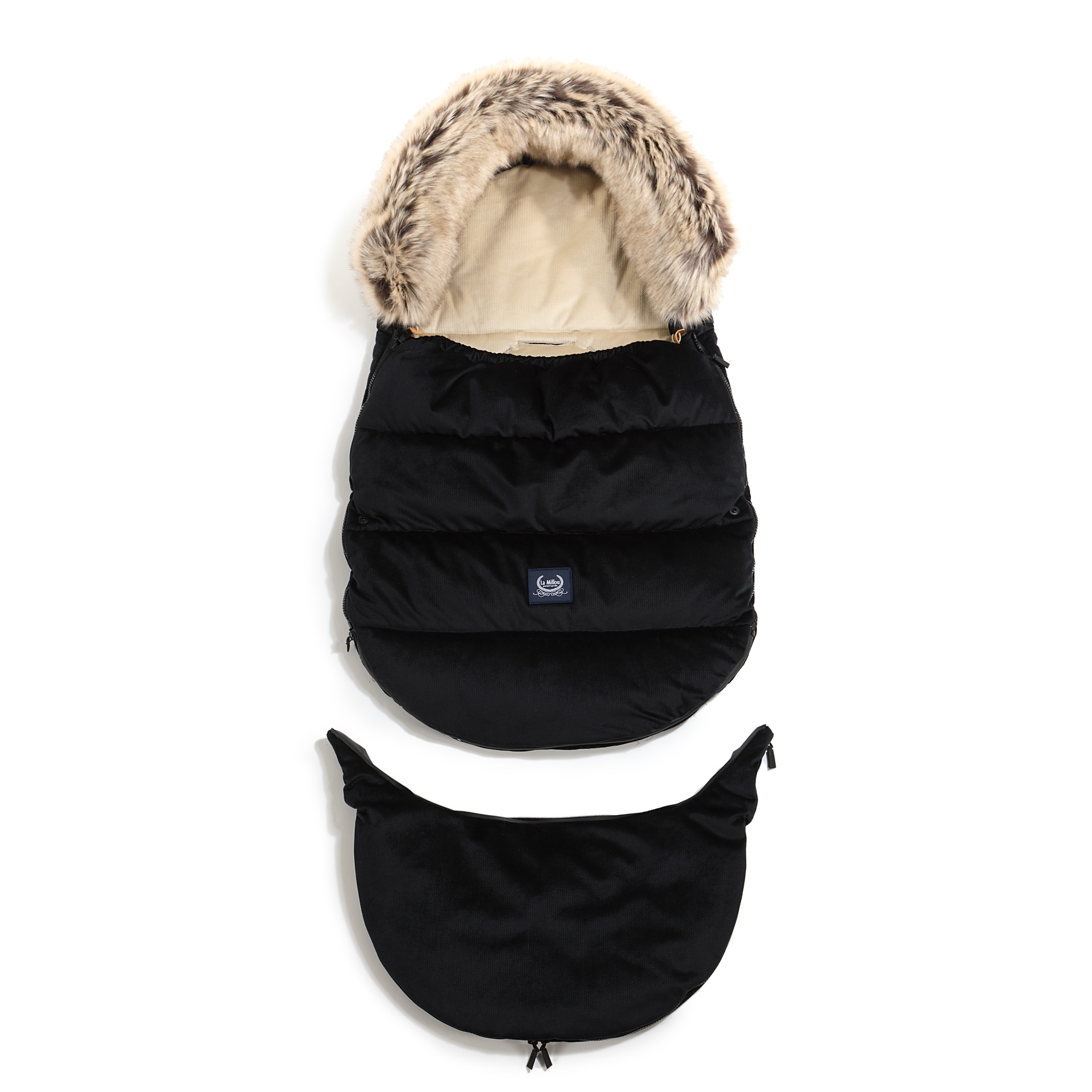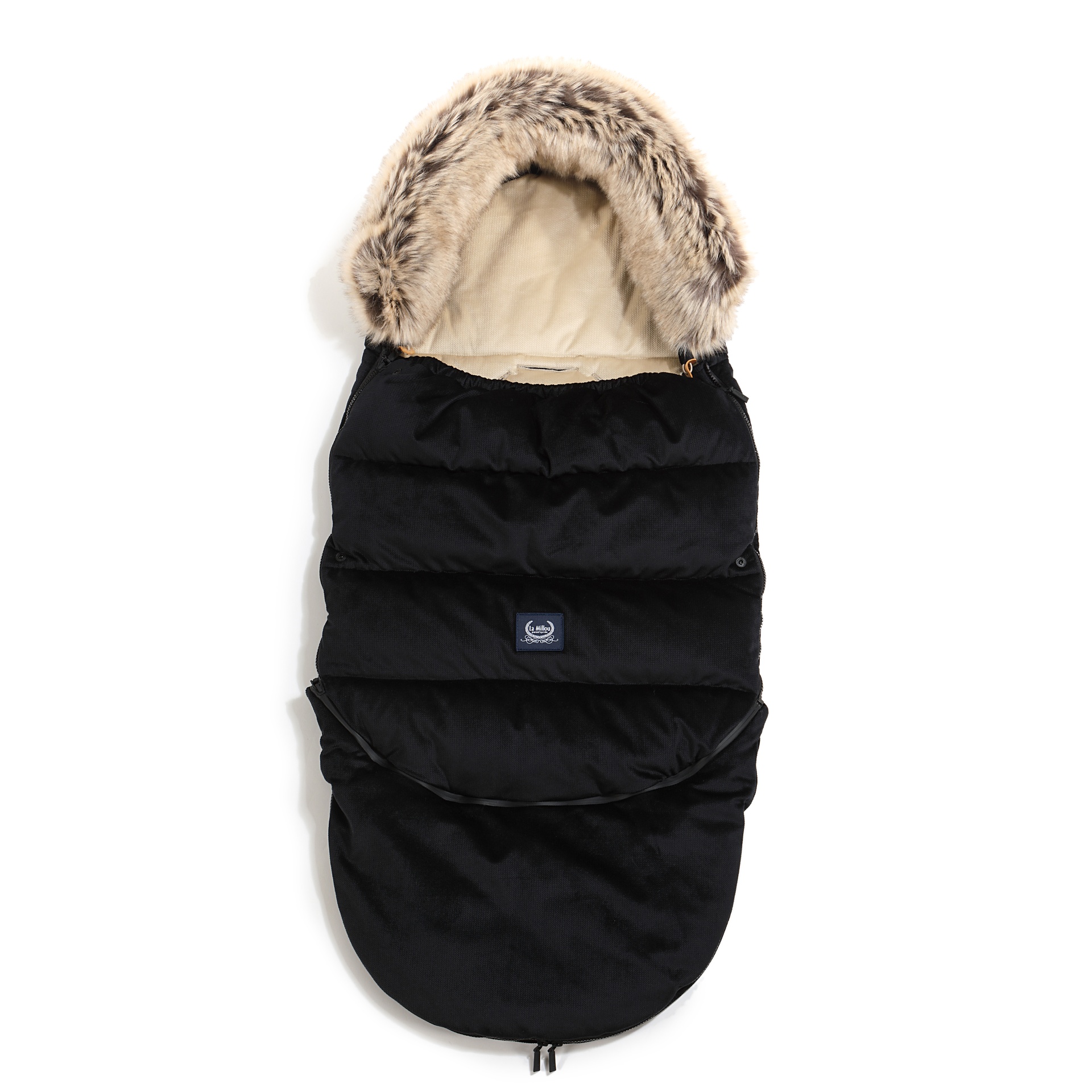Miegmaišis pritaikytas daugumai vežimėlių su 5 taškų saugos sistema, o viršuje įsiūtas audinys neleidžia miegmaišiui slysti naudojimo metu. Reguliuojama gobtuvo dalis suteikia papildomą šilumą galvai ir baigta nuimamu kailiu.