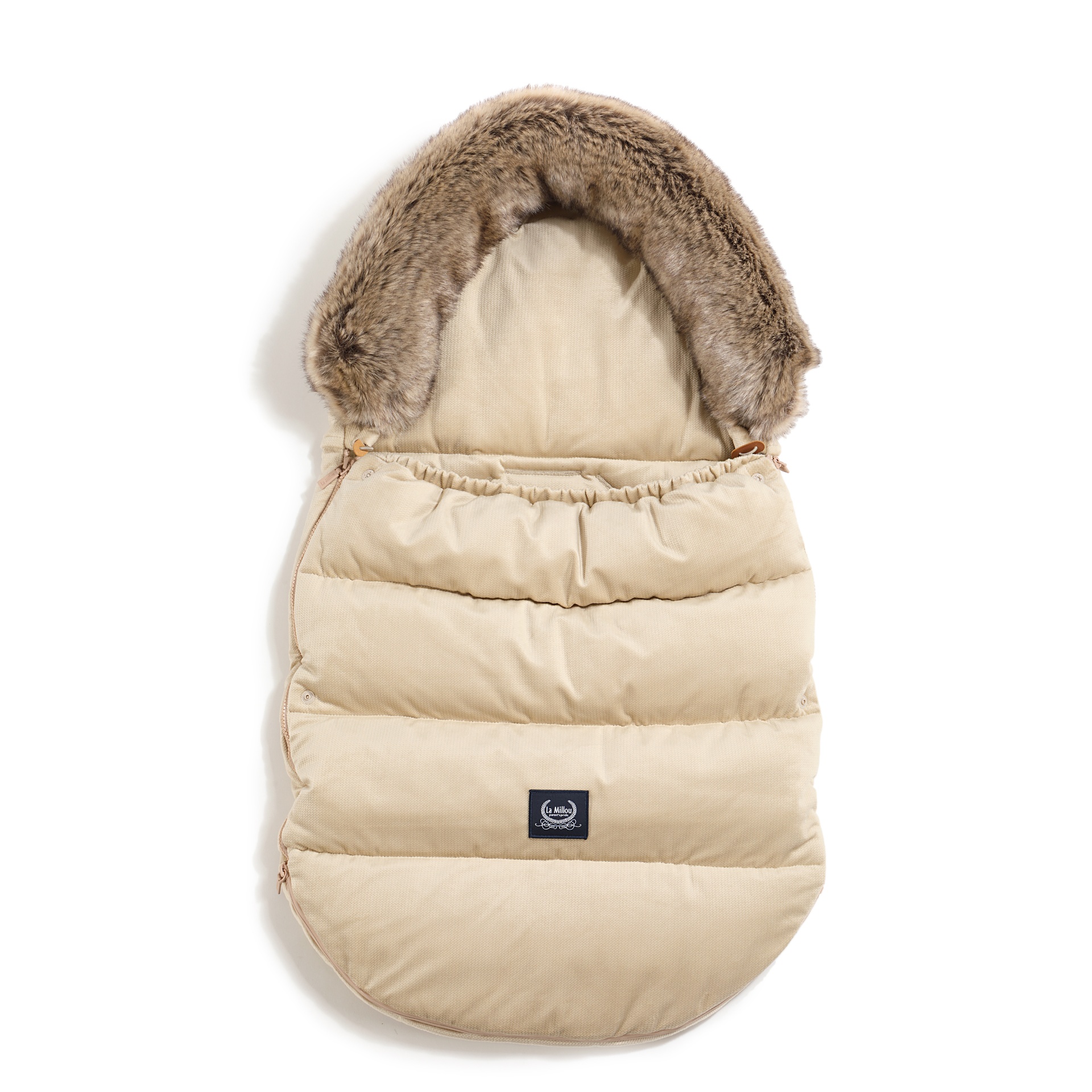 Miegmaišis pritaikytas daugumai vežimėlių su 5 taškų saugos sistema, o viršuje įsiūtas audinys neleidžia miegmaišiui slysti naudojimo metu. Reguliuojama gobtuvo dalis suteikia papildomą šilumą galvai ir baigta nuimamu kailiu.