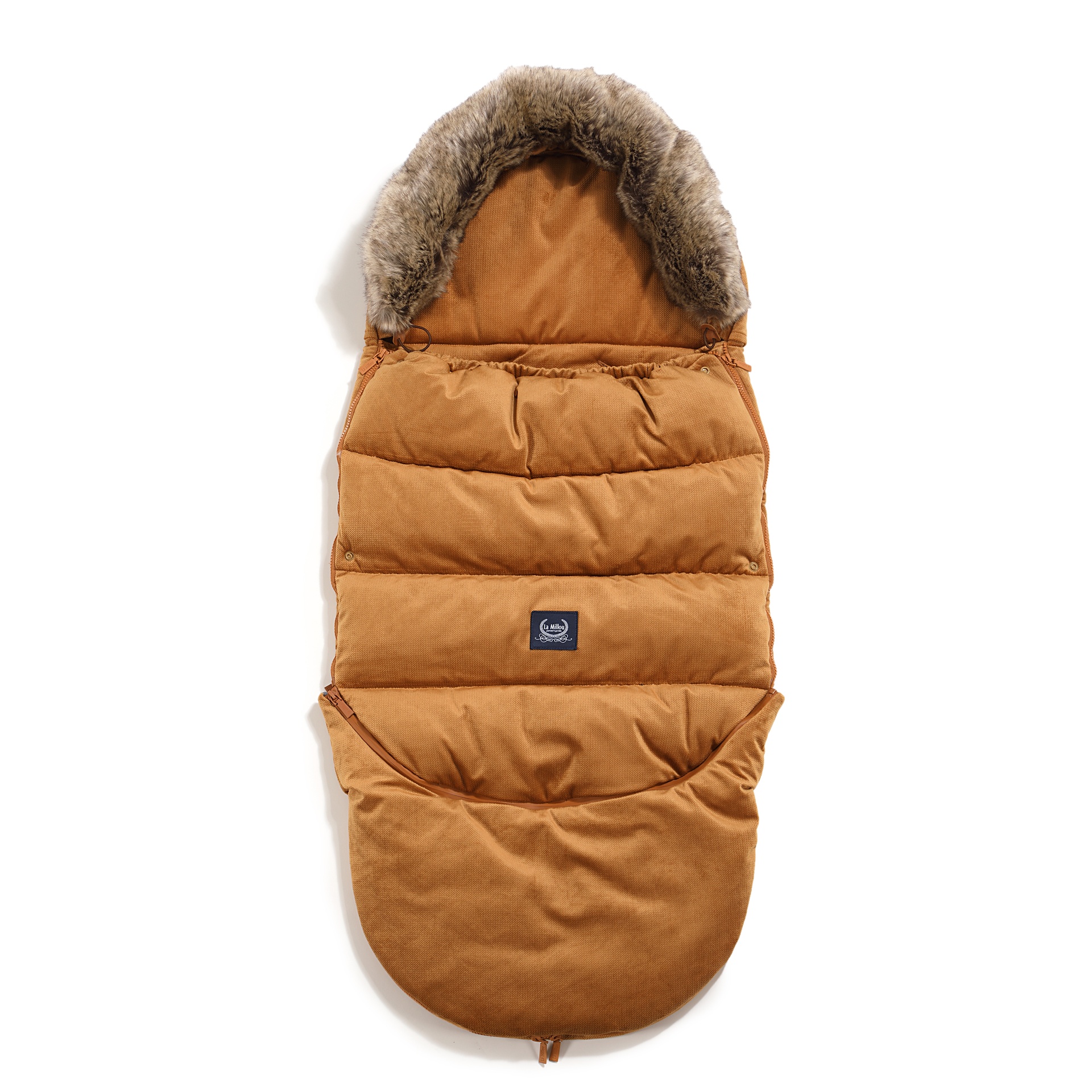 Miegmaišis pritaikytas daugumai vežimėlių su 5 taškų saugos sistema, o viršuje įsiūtas audinys neleidžia miegmaišiui slysti naudojimo metu. Reguliuojama gobtuvo dalis suteikia papildomą šilumą galvai ir baigta nuimamu kailiu.