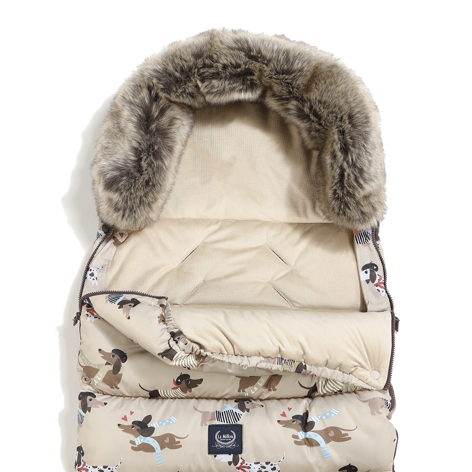 Miegmaišis pritaikytas daugumai vežimėlių su 5 taškų saugos sistema, o viršuje įsiūtas audinys neleidžia miegmaišiui slysti naudojimo metu. Reguliuojama gobtuvo dalis suteikia papildomą šilumą galvai ir baigta nuimamu kailiu.