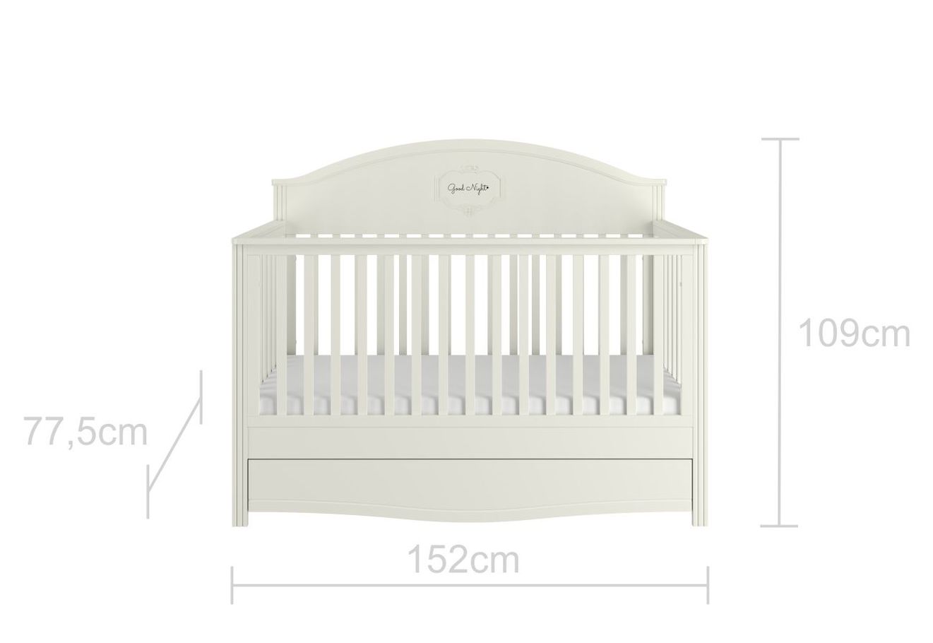 Ši lovytė sukurta augti kartu su vaiku. Iš pradžių – kaip saugi lovelė su 3 čiužinio aukščiais (27,7 / 45,5 / 58 cm), vėliau, nuėmus priekinį rėmą, ji tampa patogia lova ar sofa savarankiškam mažyliui. Pridedama ir apsauginė atrama, sauganti nuo iškritimo – ją galima montuoti tiek kairėje, tiek dešinėje pusėje. 👶🛏️