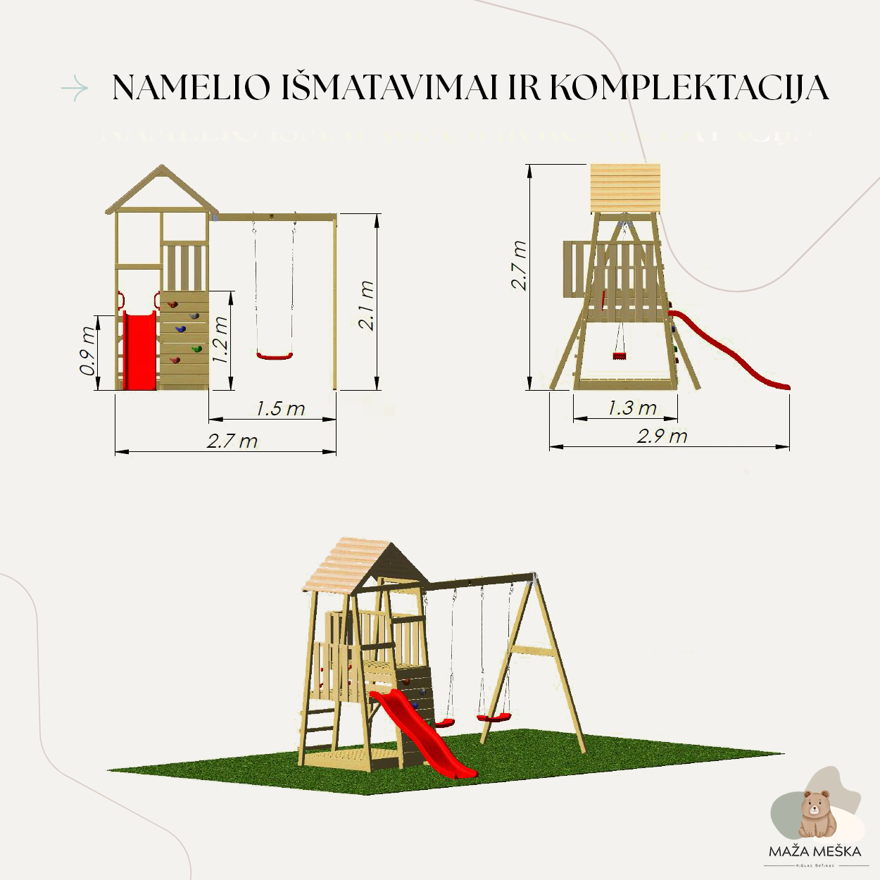 Visos aikštelės išmatavimai: 290 x 270 x 270 cm