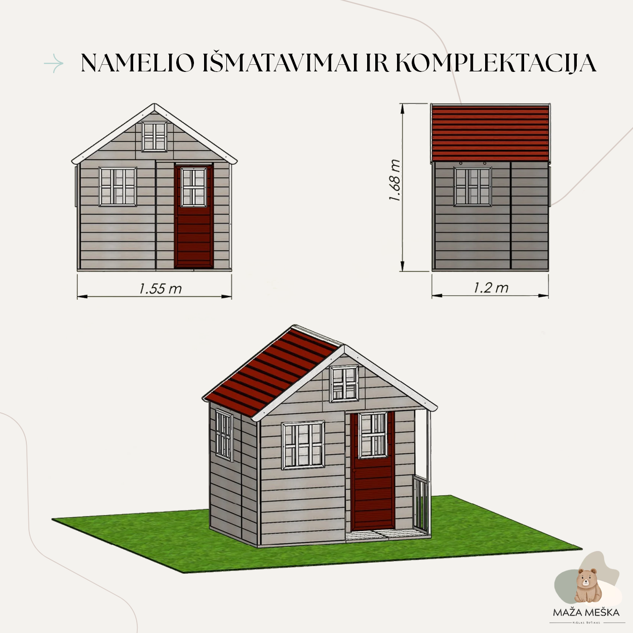 • Namelio išorės matmenys: 120 x 155 x 168 cm