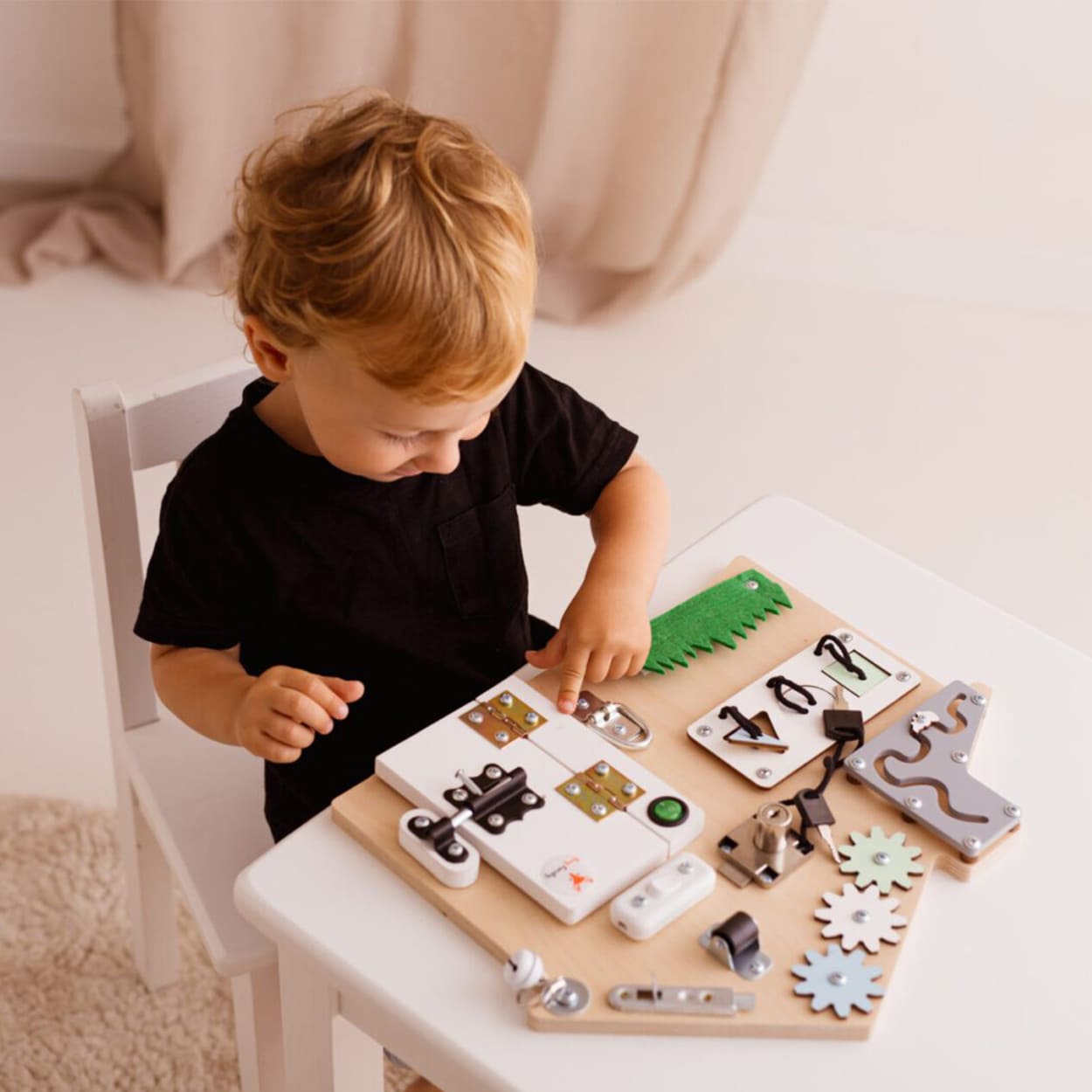 Vaikas gali atidaryti dureles, pasukti krumpliaračius, pažvelgti į veidrodėlį ar paklausyti skambučio. Kiekviena lentos dalis siūlo naują veiklą ir kitokią patirtį. Dėl nedidelio dydžio ją lengva pasiimti į kelionę ar pas senelius.