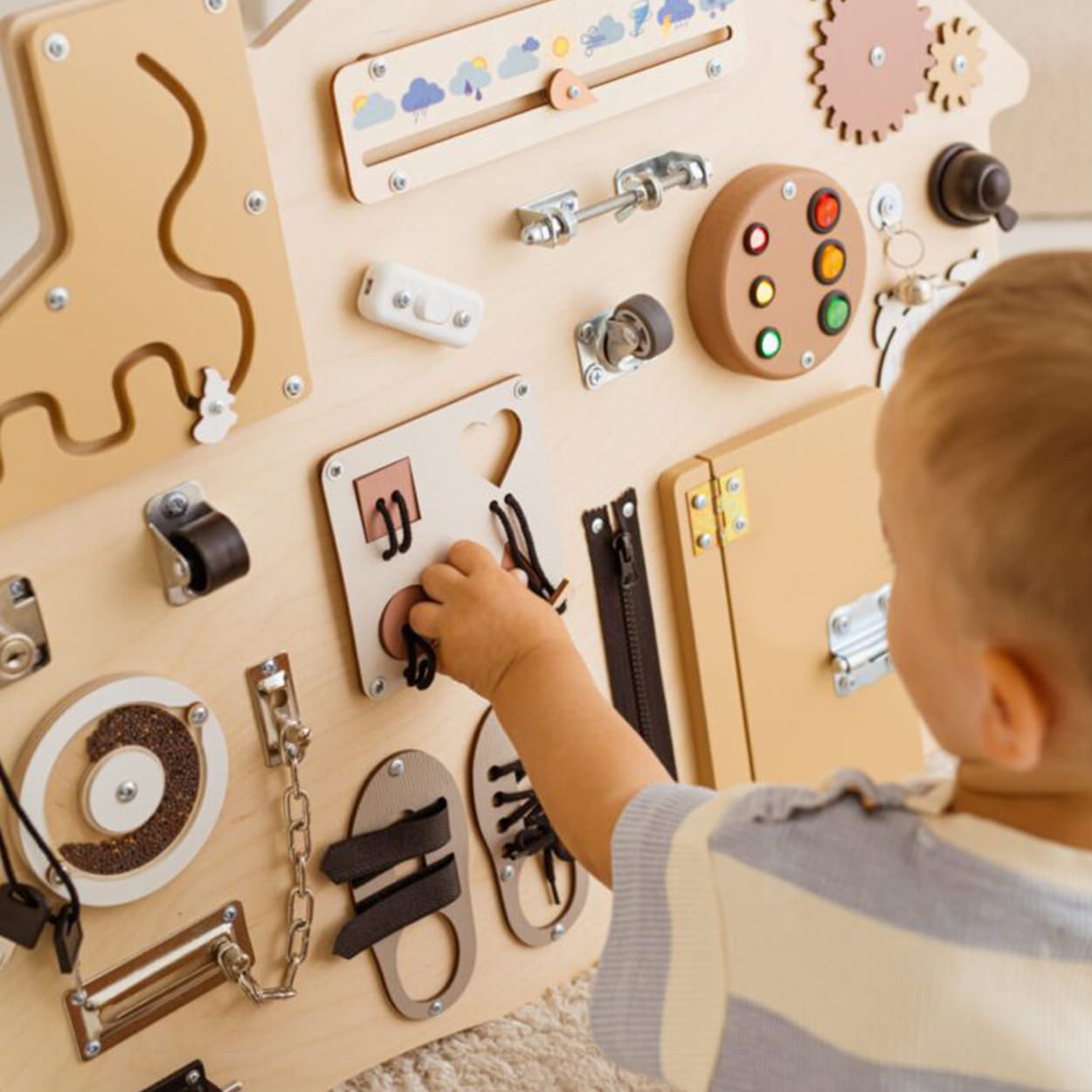 Lavinamoji Veiklos Lenta XL NAMELIS BOHO – tai išmaniai sukurta sensorinė lenta su atrama, padedanti vaikui žaismingai pažinti kasdienę rutiną. Ji sujungia žaidimą, mokymąsi ir pasiruošimą dienai vienoje jaukioje erdvėje.