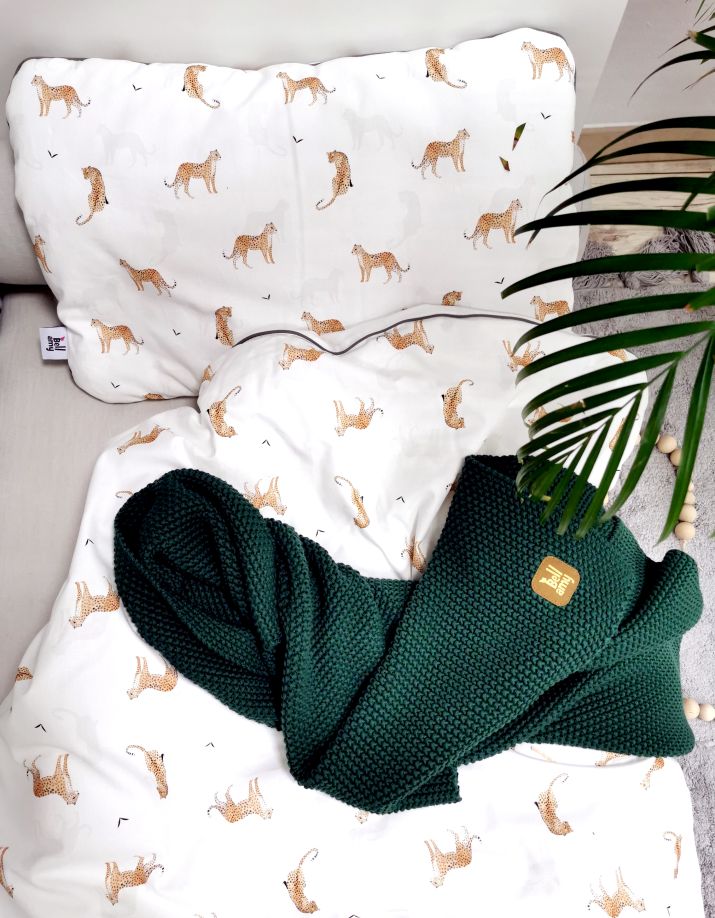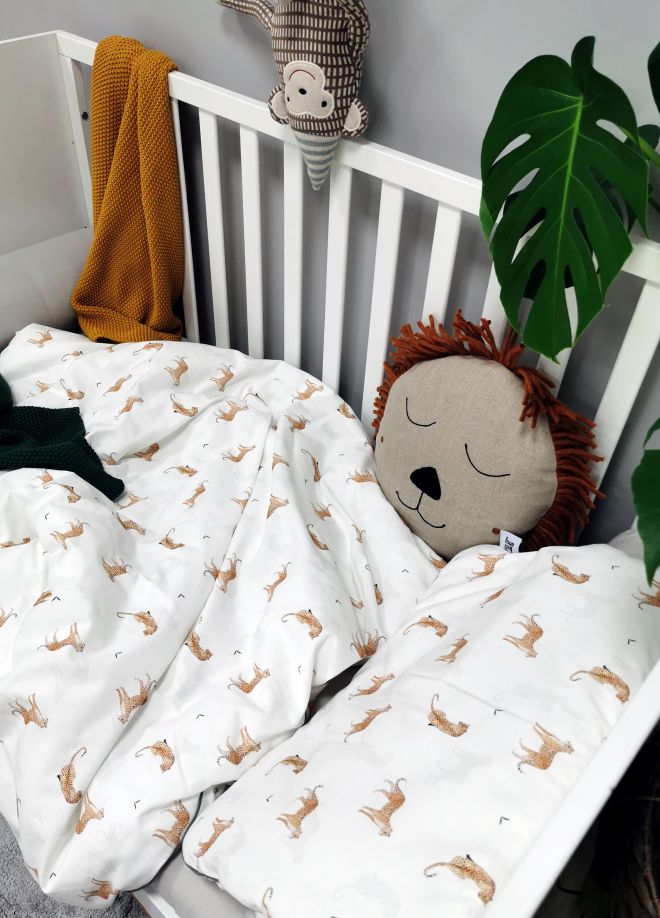 Stilingas, švelnus ir praktiškas – būtent toks yra LEOPARDAS patalynės komplektas su užpilu. Sukurtas mažyliams, kurių dienos pilnos nuotykių, o naktys – jaukumo. Įkvėptas gyvūnijos motyvų ir sušvelnintas pastelinėmis spalvomis, šis komplektas puikiai tiks tiek berniuko, tiek mergaitės kambariui.