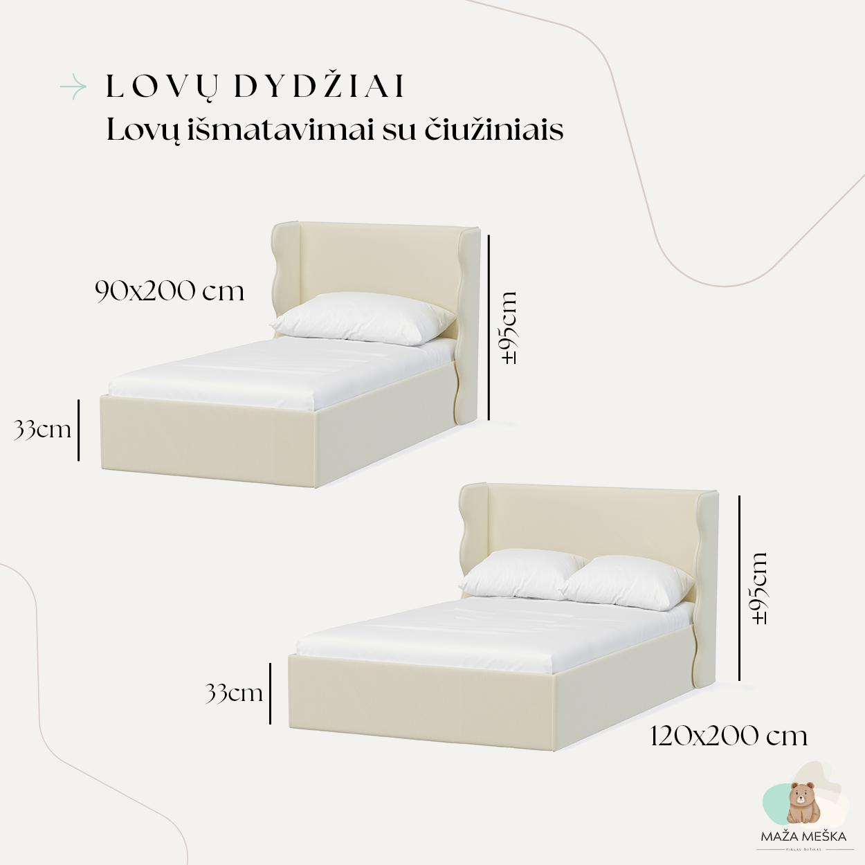 - Lovos pritaikytos 90×200 cm ir 120×200 cm čiužiniams