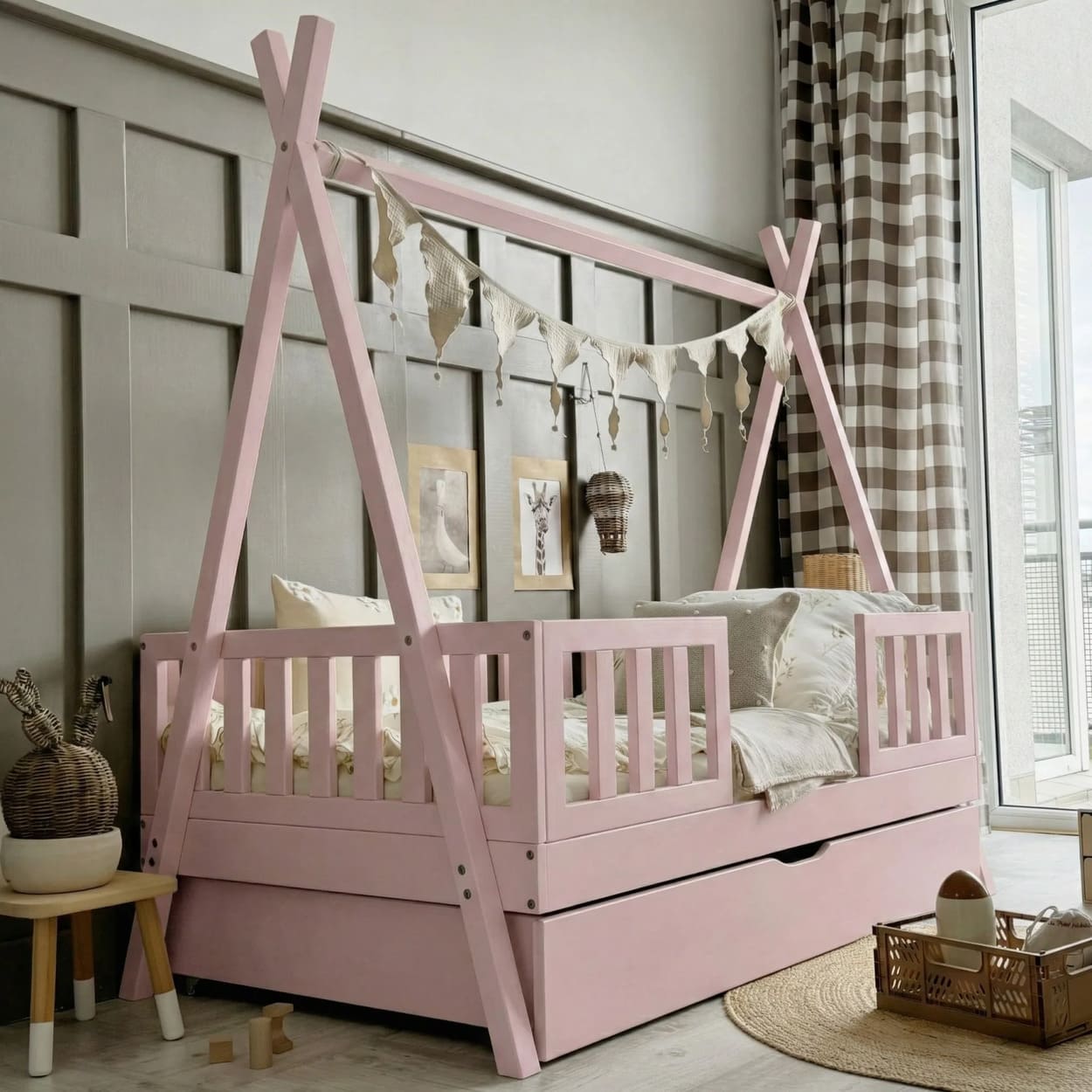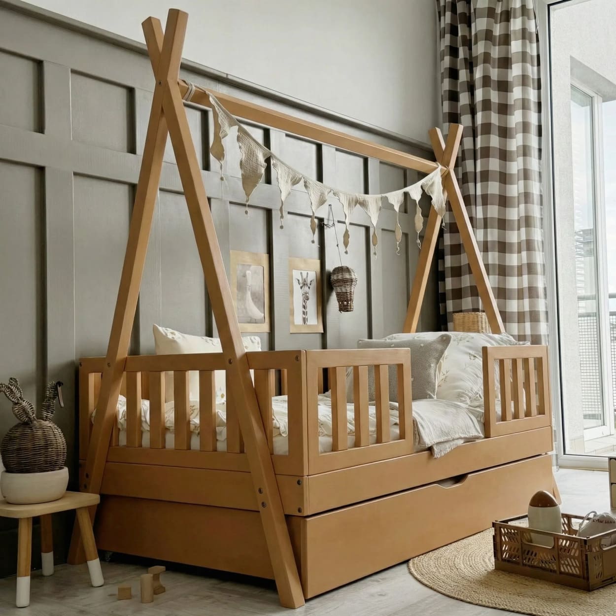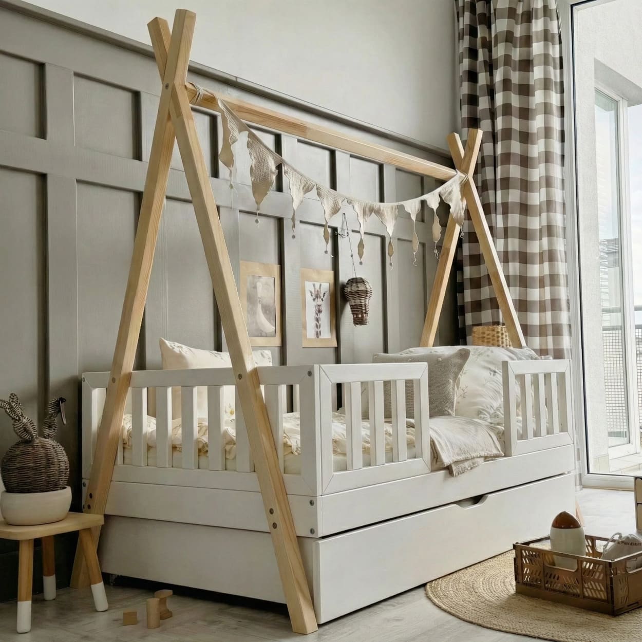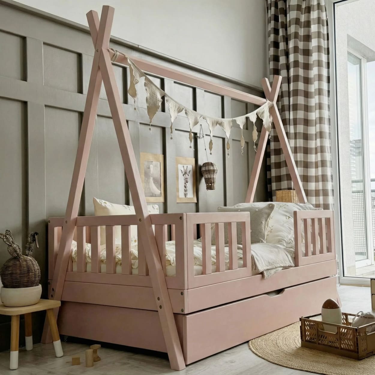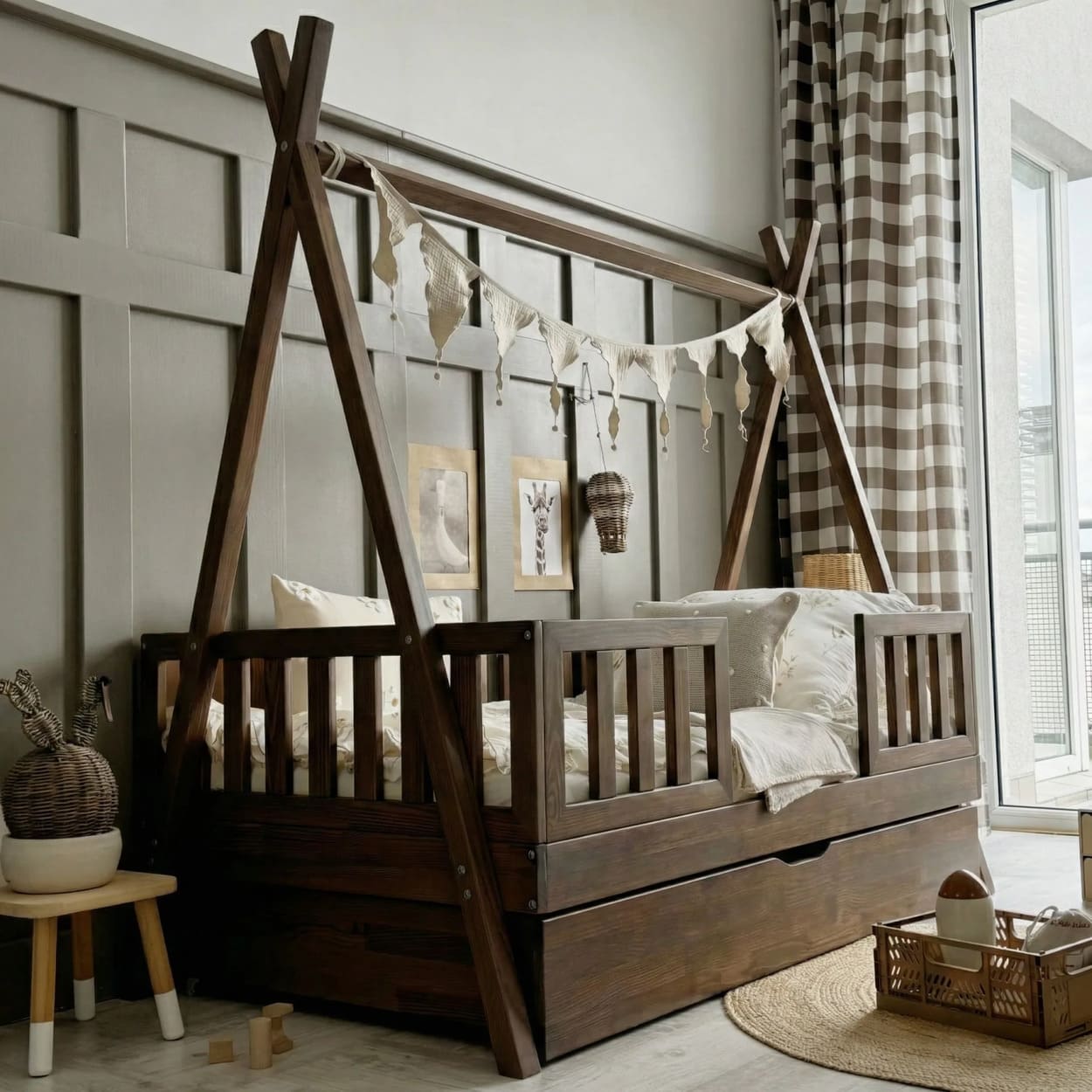 Jaukus kampelis namuose, kuriame auga ramybė, šiluma ir gražios vaikystės akimirkos.