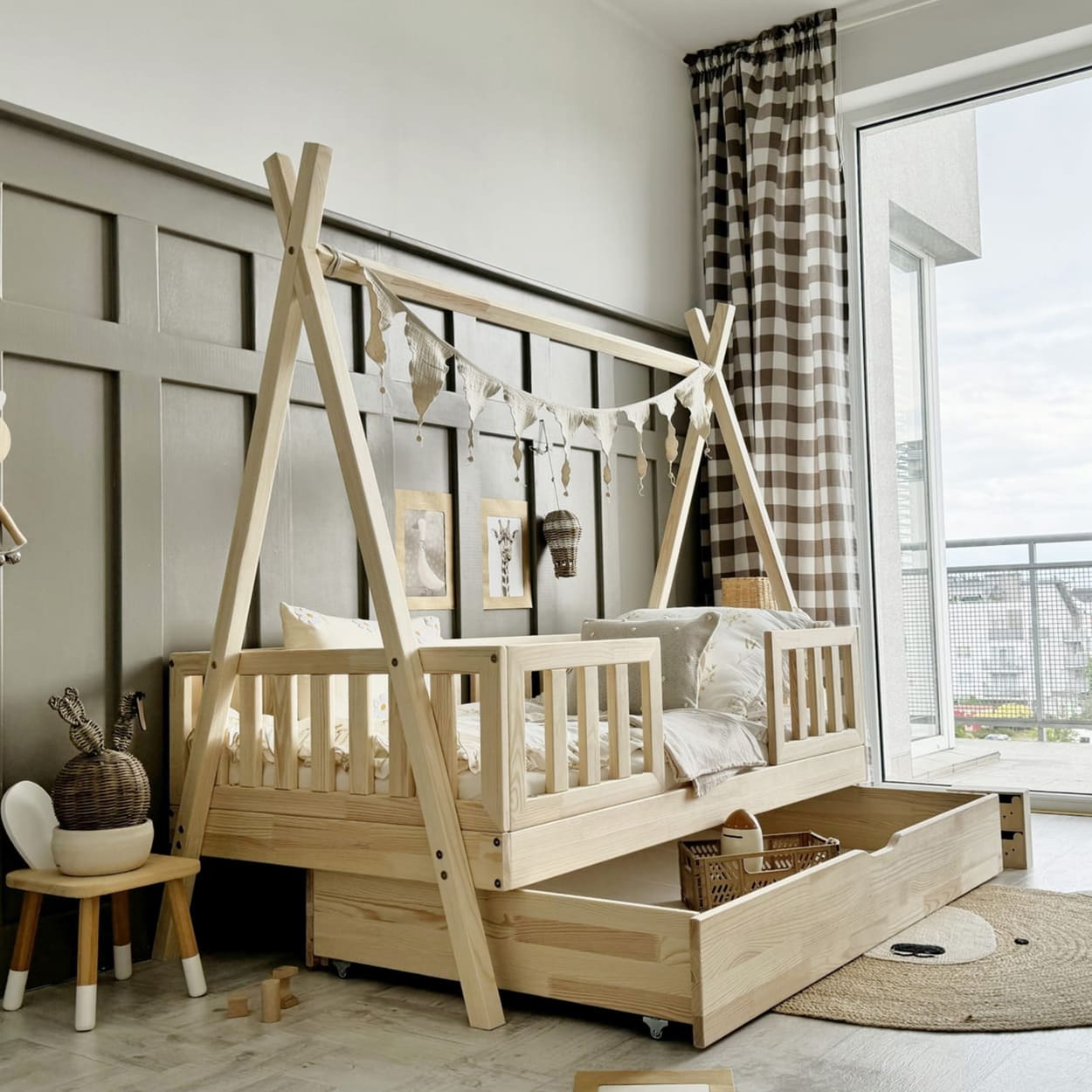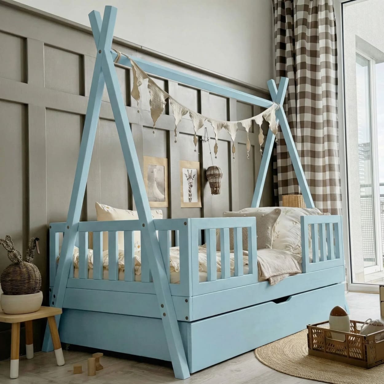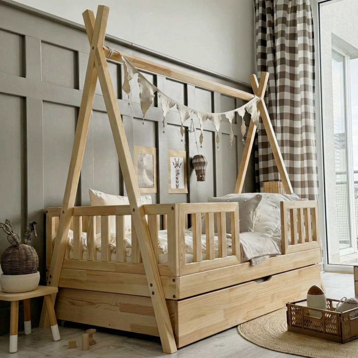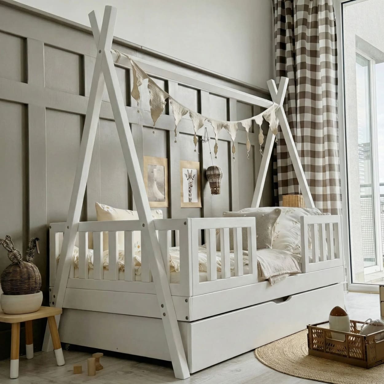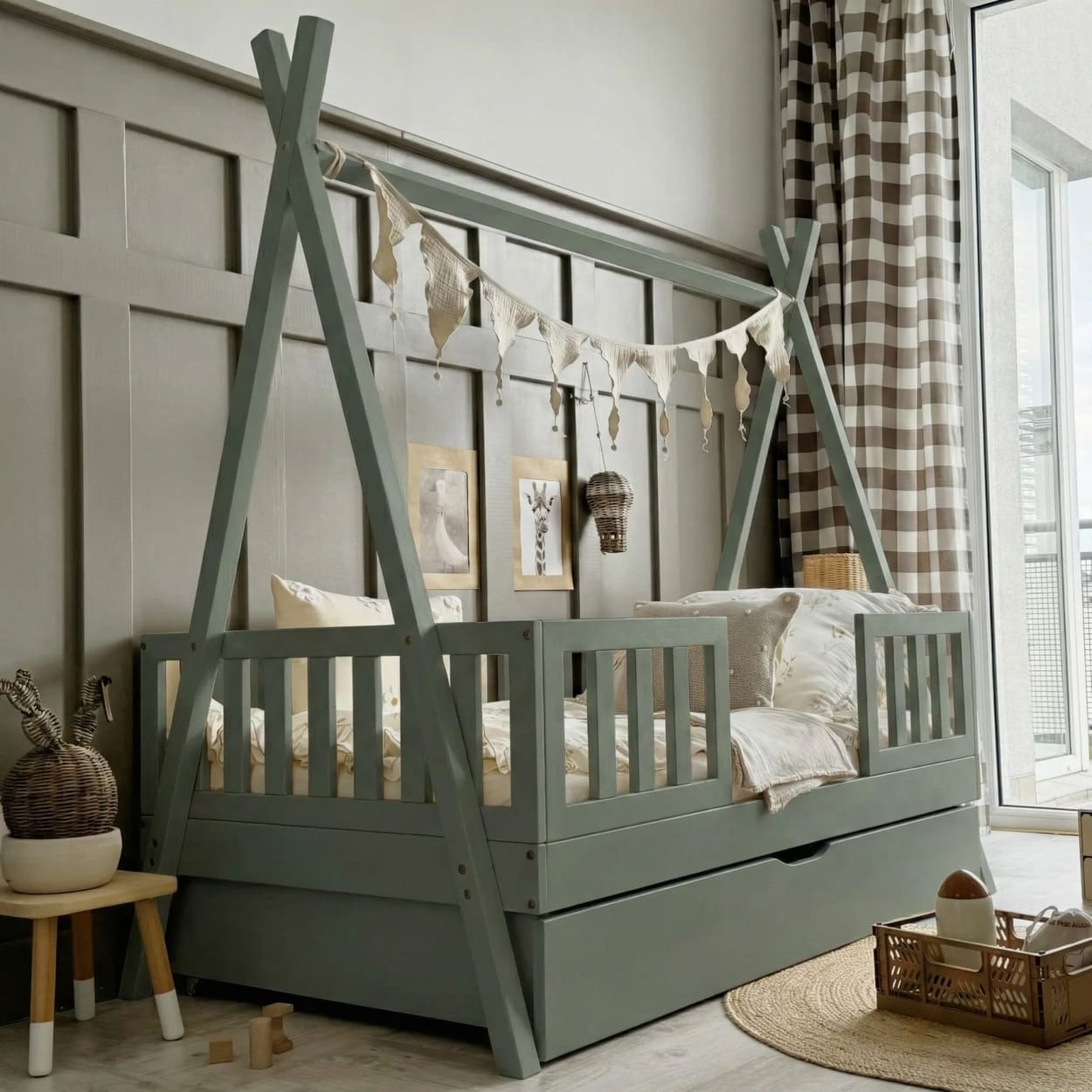 Jaukus kampelis namuose, kuriame auga ramybė, šiluma ir gražios vaikystės akimirkos.