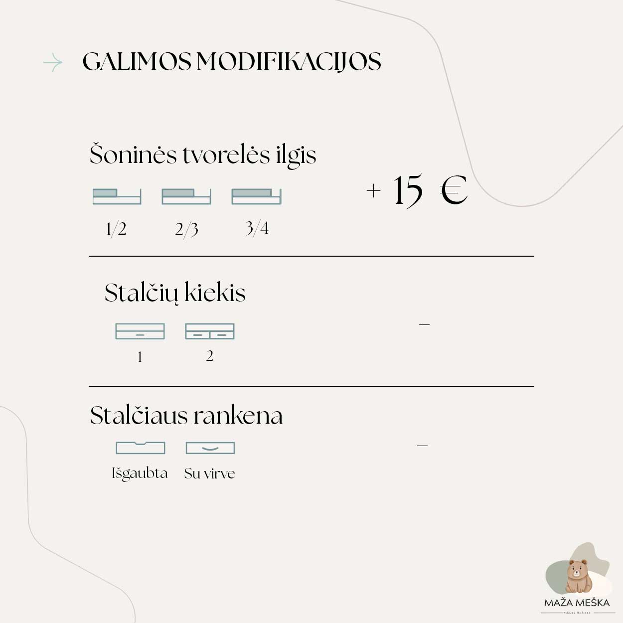 Visos prekės yra gaminamos individualiai – po užsakymo pateikimo bei jo apmokėjimo.
