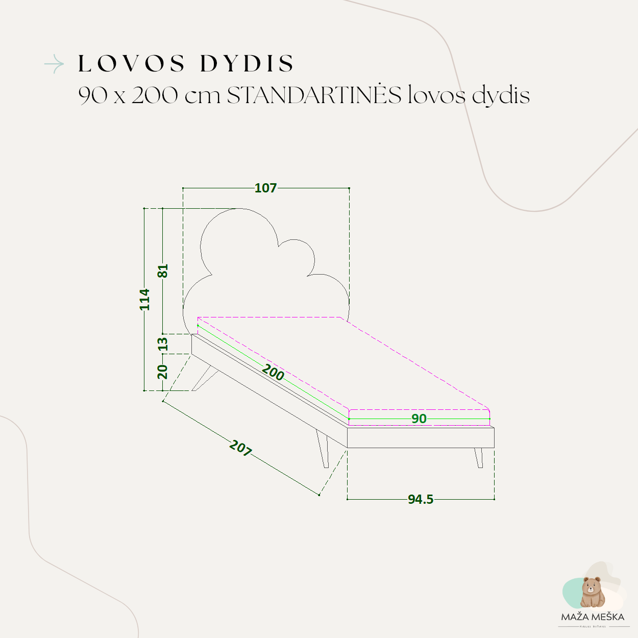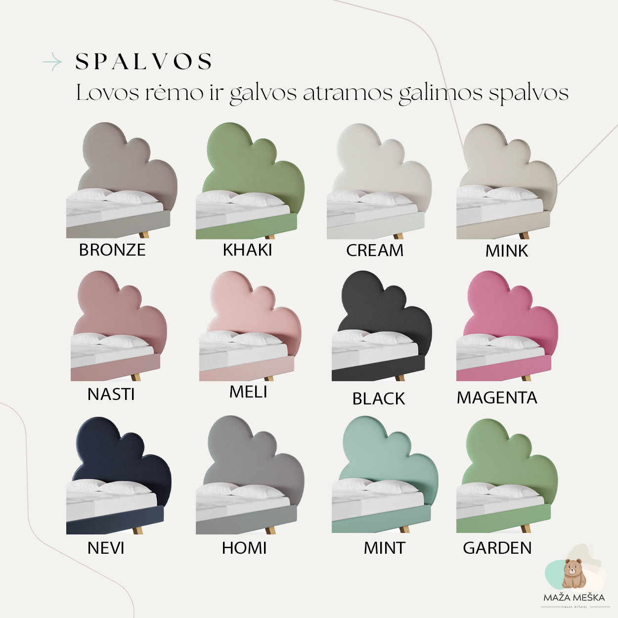 | Lovos audinio spalva | Black, Bronze, Cream, Garden, Homi, Khaki, Magenta, Meli, Mink, Mint, Nasti, Nevi |