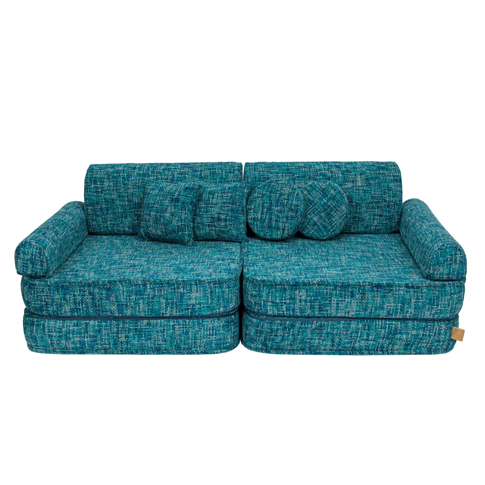 Funkcionalumas ir pritaikymas – sofa yra lengva ir judri, todėl ją galima greitai perkelti ir pakeisti kambario išdėstymą pagal vaikų poreikius. Modulinė konstrukcija leidžia vaikams kurti savo struktūras: namelius, tunelius, atskirus fotelius ar žaidimų kampelius. Tai skatina kūrybiškumą, vysto loginį mąstymą ir suteikia begalę žaidimų galimybių.