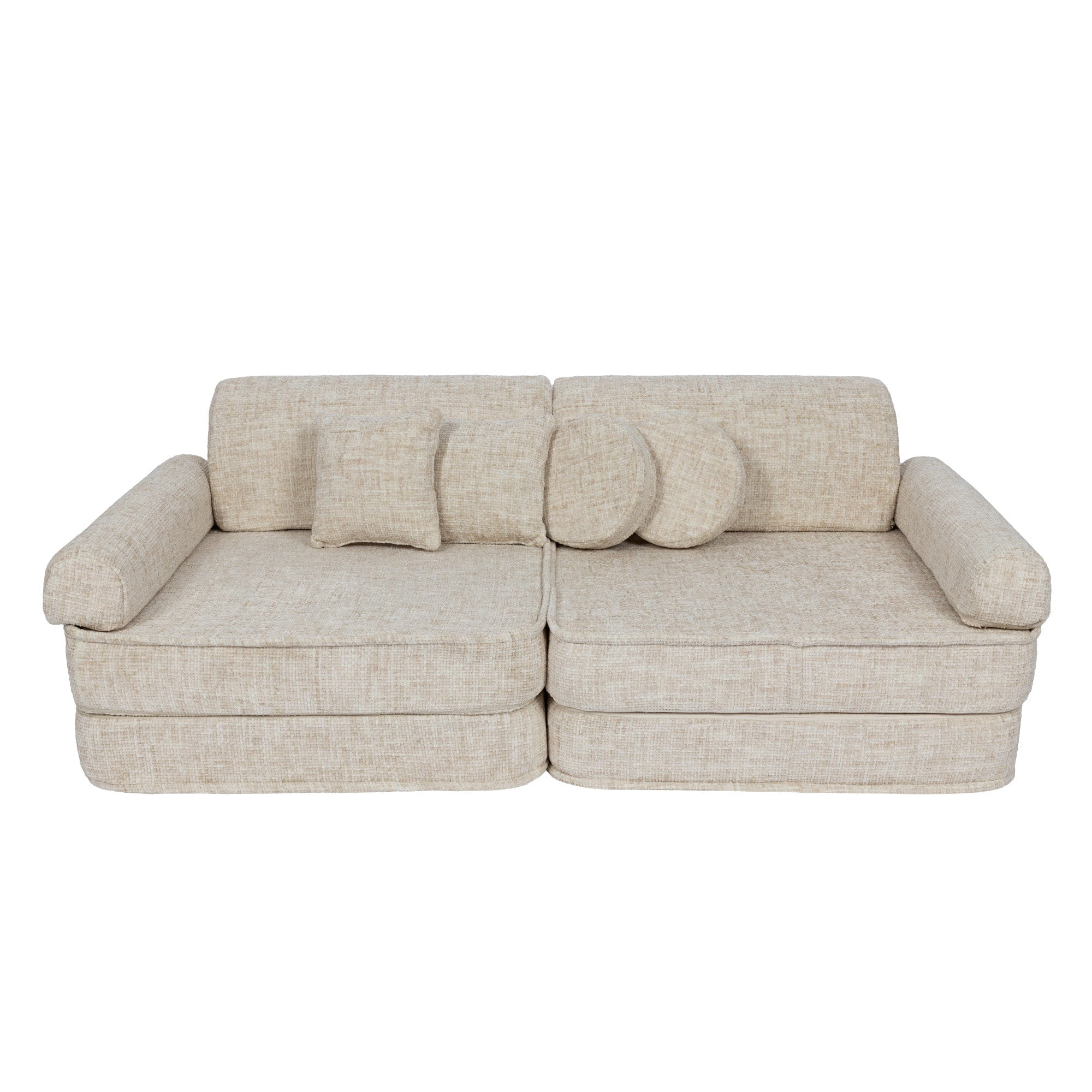 Funkcionalumas ir pritaikymas – sofa yra lengva ir judri, todėl ją galima greitai perkelti ir pakeisti kambario išdėstymą pagal vaikų poreikius. Modulinė konstrukcija leidžia vaikams kurti savo struktūras: namelius, tunelius, atskirus fotelius ar žaidimų kampelius. Tai skatina kūrybiškumą, vysto loginį mąstymą ir suteikia begalę žaidimų galimybių.