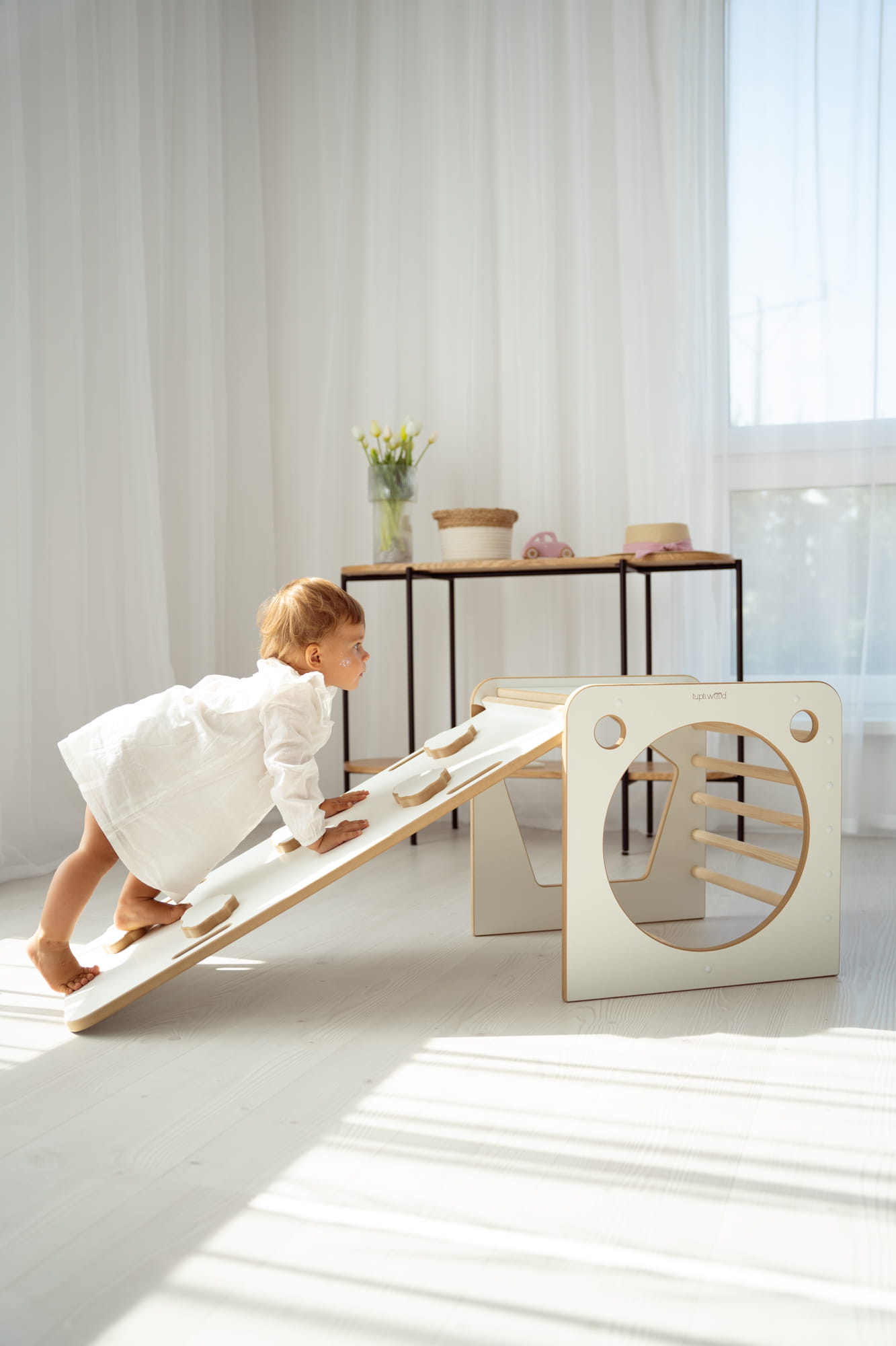 Šis priedas – ne tik stilingas, bet ir labai funkcionalus žaislas, kuris suteikia vaikų kambariui žaismingumo, saugumo ir komforto. Vienoje pusėje rasite tvirtą sienelę, kuri saugo nuo netikėtų kritimų, o kitoje – super sklandžią čiuožyklą, kuri kviečia leistis žemyn vėl ir vėl. ⛷️ Tai vieta, kur jūsų vaikas galės džiaugtis aktyviu judėjimu ir išlaisvinti visą savo energiją!