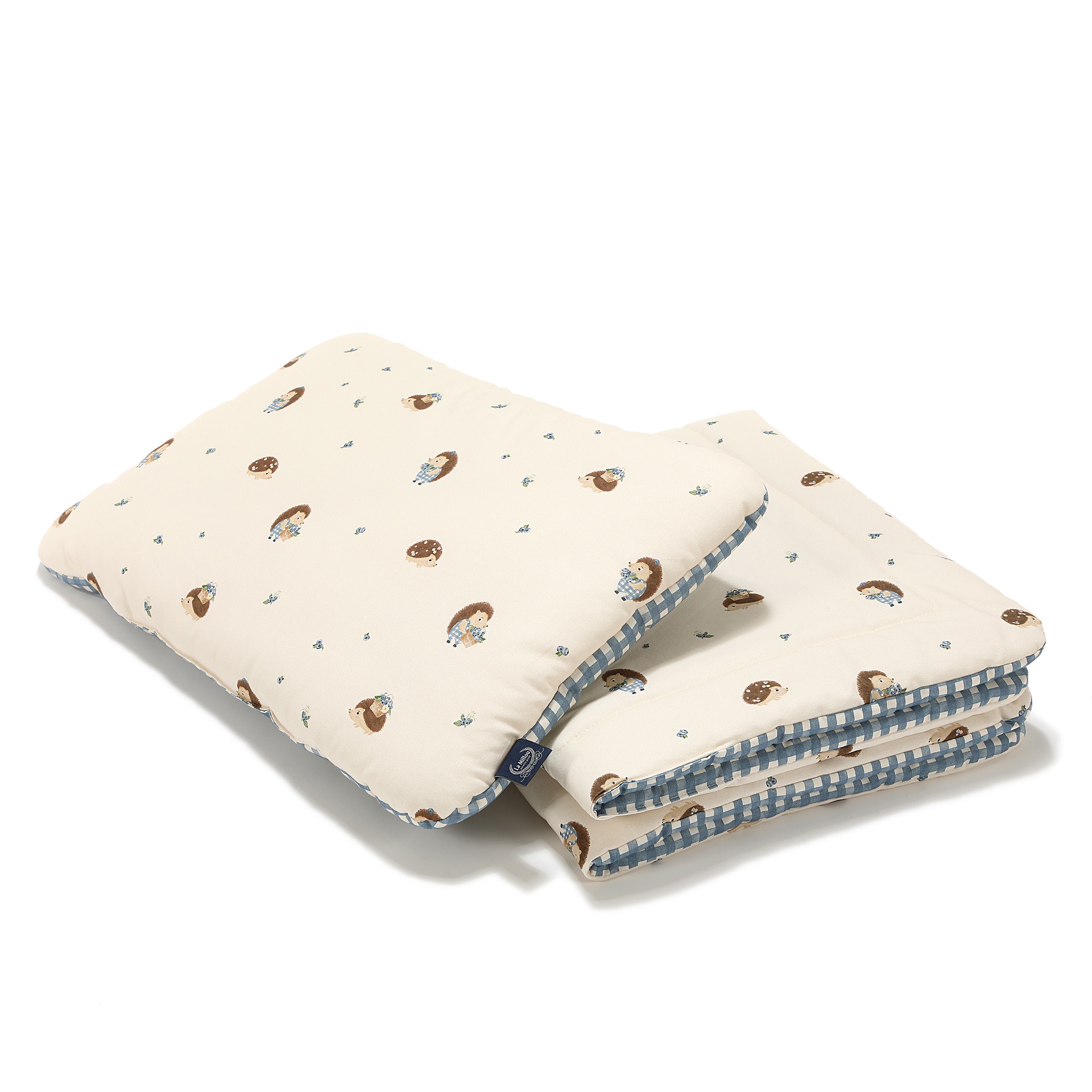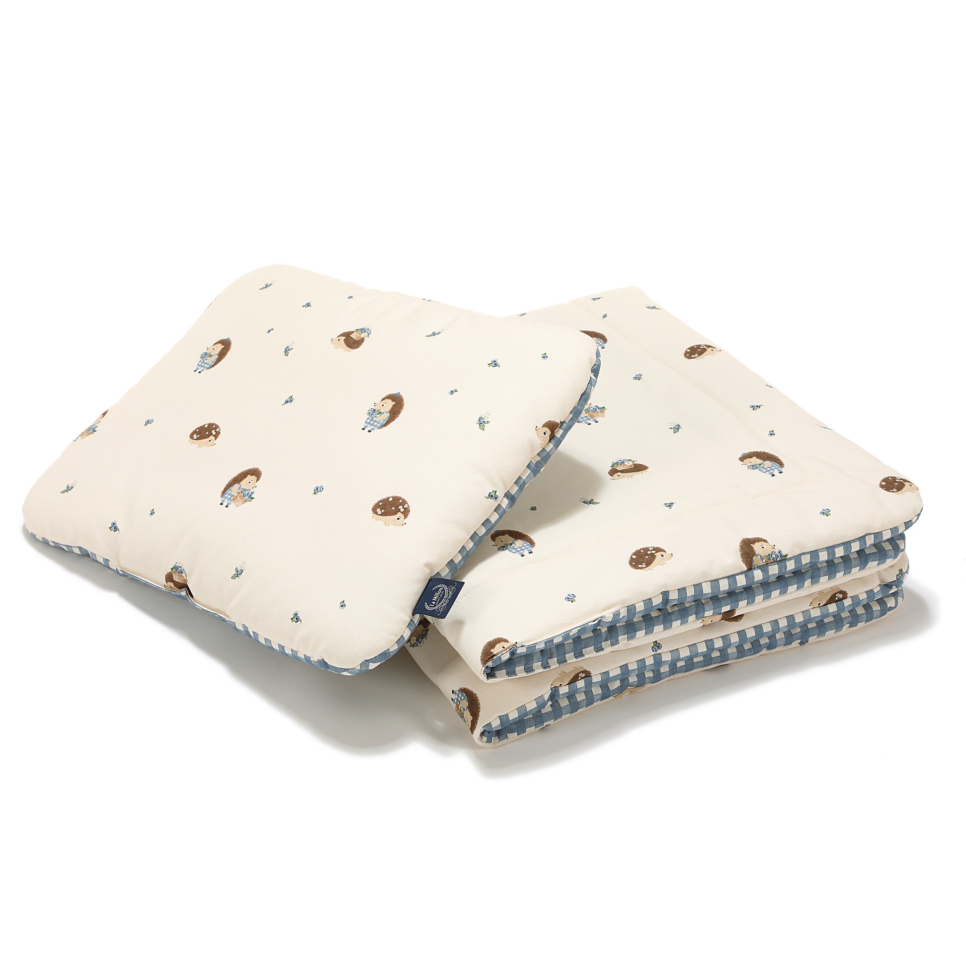 Medvilninė Patalynė Su Užpildu UOGOS EŽIUKAS – tai pilnas rinkinys, kuris suteikia komfortą ir šilumą kiekvienam vaikui miego metu. Rinkinį sudaro minkšta antklodė ir pagalvė, pagaminti iš aukščiausios kokybės medvilnės, o užpildas – antialerginė poliesterio pluošto danga, užtikrinanti tinkamą kūno temperatūrą, deguonies prieinamumą ir drėgmės reguliavimą. Dėl šių savybių jūsų mažylis mėgausis ramia, komfortiška ir sveika nakties miego patirtimi.