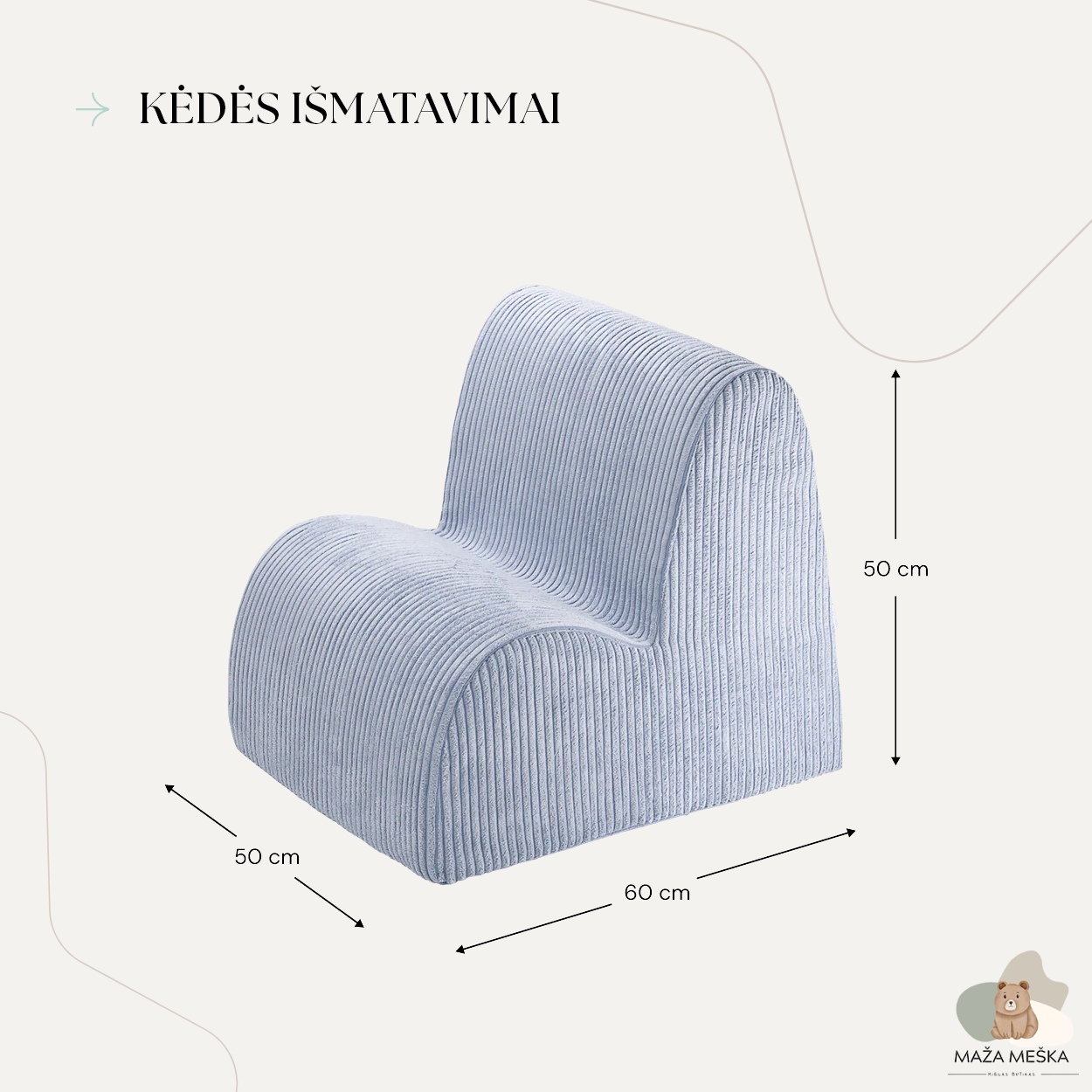 Mėlynių Spalvos Vaikiškas Krėslas-Debesėlis