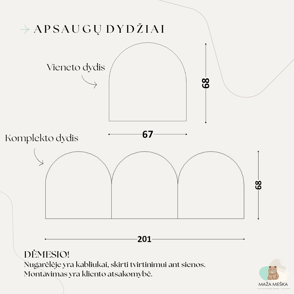 DĖMESIO! Atramos tvirtinasi prie sienos (ne prie lovos). Atramų nguarėlėje yra kabliukai, skirti montavimui ant sienos. Montavimas yra kliento atsakomybė. MONTAVIMUI SKIRTI ELEMENTAI NEĮSKAIČIUOTI, JUOS BŪTINA PRITAIKYTI PATIEMS PRIE TURIMO SIENOS TIPO.