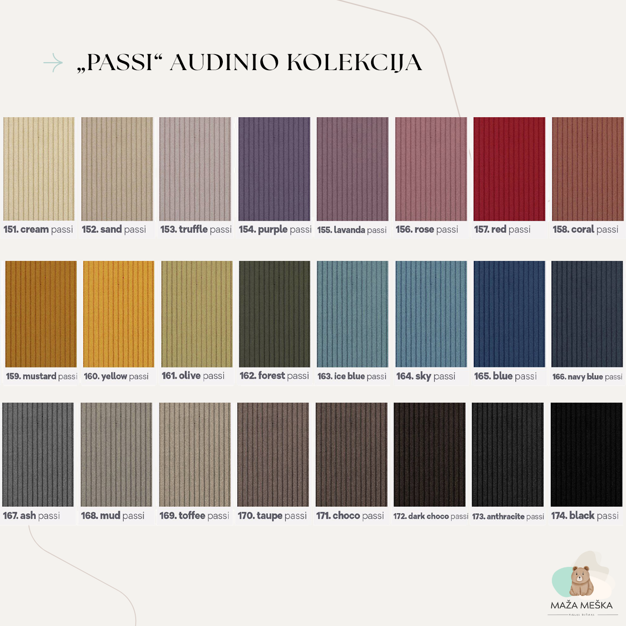 PASSI KOLEKCIJA (velveto audinys) – neglamžus, minkštas, neįprastų, intensyvių spalvų.