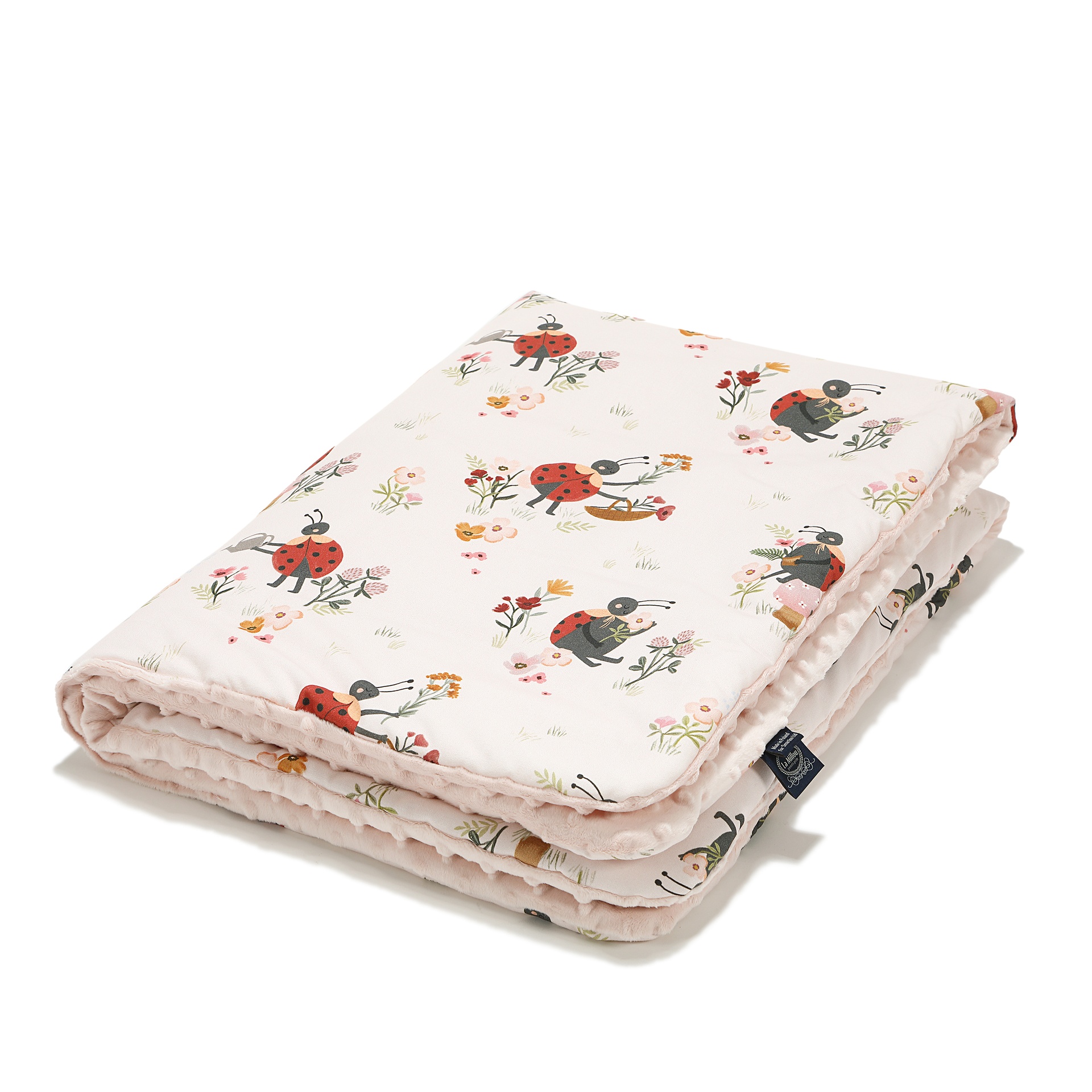 Viena pledo pusė pagaminta iš aukščiausios kokybės medvilnės su pasirinktu vienu iš keturių raštų, o kita – iš ypatingai minkšto Minky audinio, kuris suteikia jaukumo pojūtį ir švelnumą odai. Pledas užpildytas hipoalergine silikono pluošto danga, kuri suteikia šilumos pojūtį, bet kartu išlieka lengva ir neprislegia kūdikio. Tokia konstrukcija užtikrina optimalų šilumos palaikymą ir komfortą tiek miegui, tiek žaidimams.