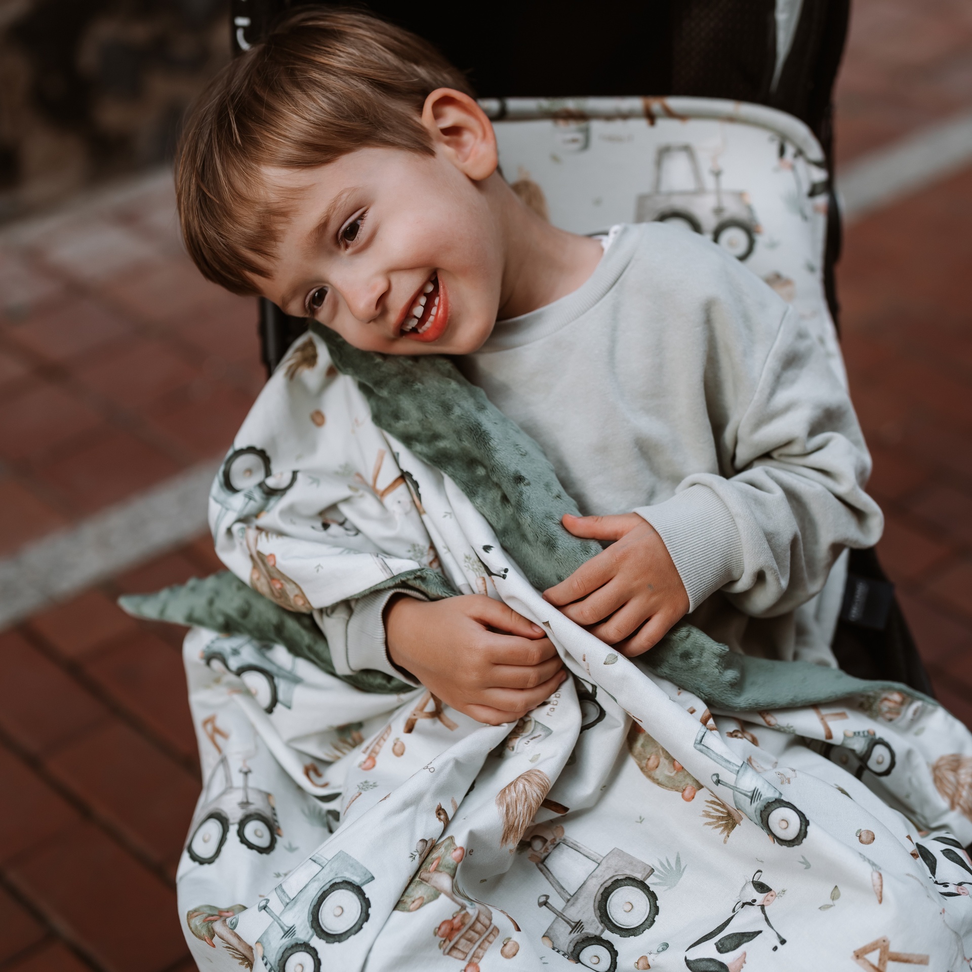Minkštas Lengvas Vaikiškas Pledas ABC FERMA – kultinis švelnus pledas, kuris puikiai tinka bet kokiai situacijai ir garantuoja komfortą jūsų mažyliui tiek namuose, tiek kelionėse. Šis pledas neturi papildomo užpildo, todėl išlieka lengvas ir universalus, leidžiantis naudoti jį tiek kaip šiltesnį dangalą, tiek kaip vėsesnę apsaugą nuo vėjo ar saulės.