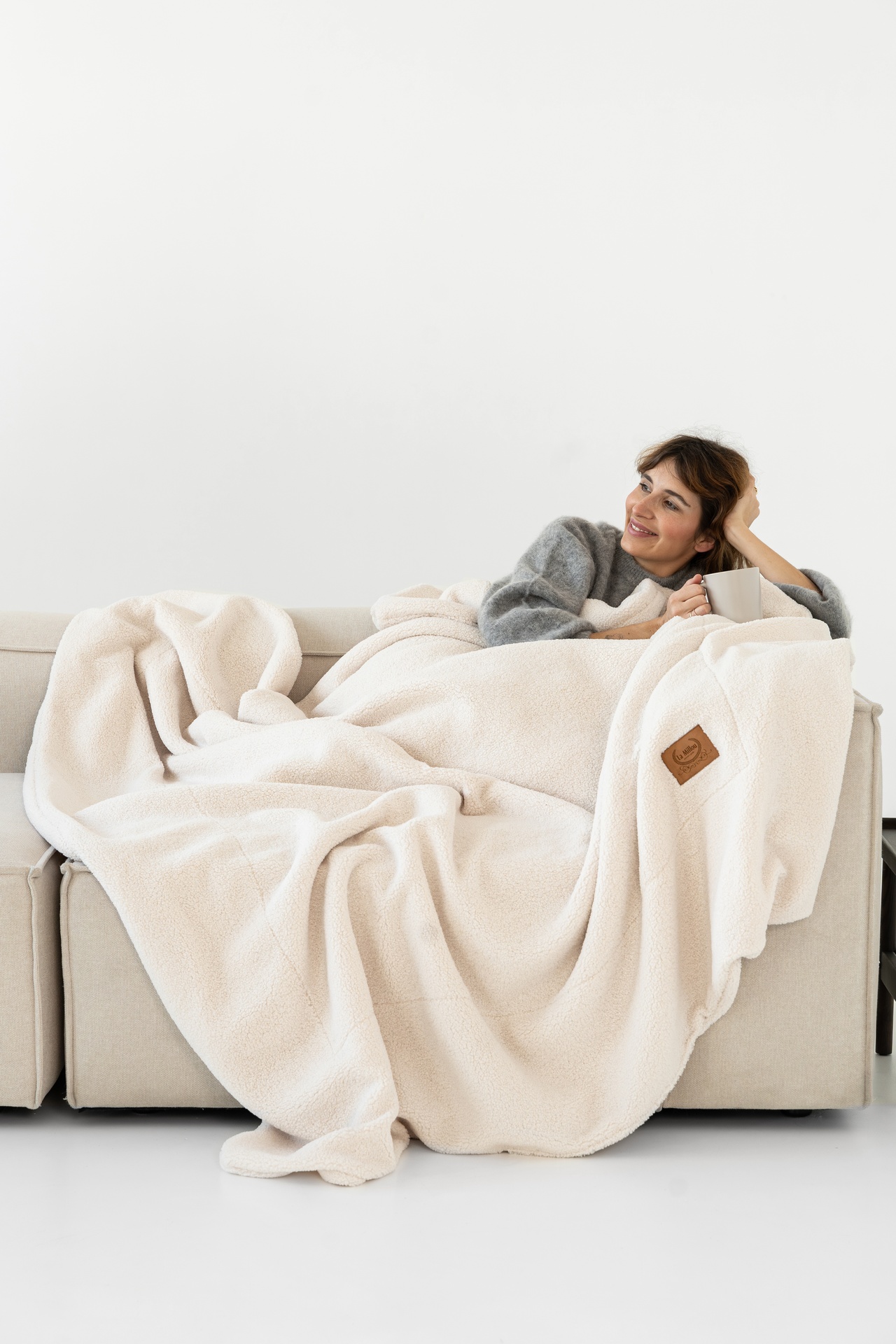 Pledas pagamintas iš dviejų sluoksnių aukštos kokybės audinių. Viena pusė – minkšta, kvėpuojanti medvilnė, kuri puikiai tinka vėsesniems orams ir užtikrina natūralų komfortą odai. Kita pusė – ypatingai švelnus ir mylimas Minky audinys, kuris suteikia šilumos pojūtį, todėl pledas idealiai tinka šaltoms dienoms ar jaukiems vakaro miego momentams. Ši dviguba konstrukcija leidžia lengvai pritaikyti pledą prie aplinkos temperatūros: norint vėsos – medvilnė, norint šilumos – minky pusė.