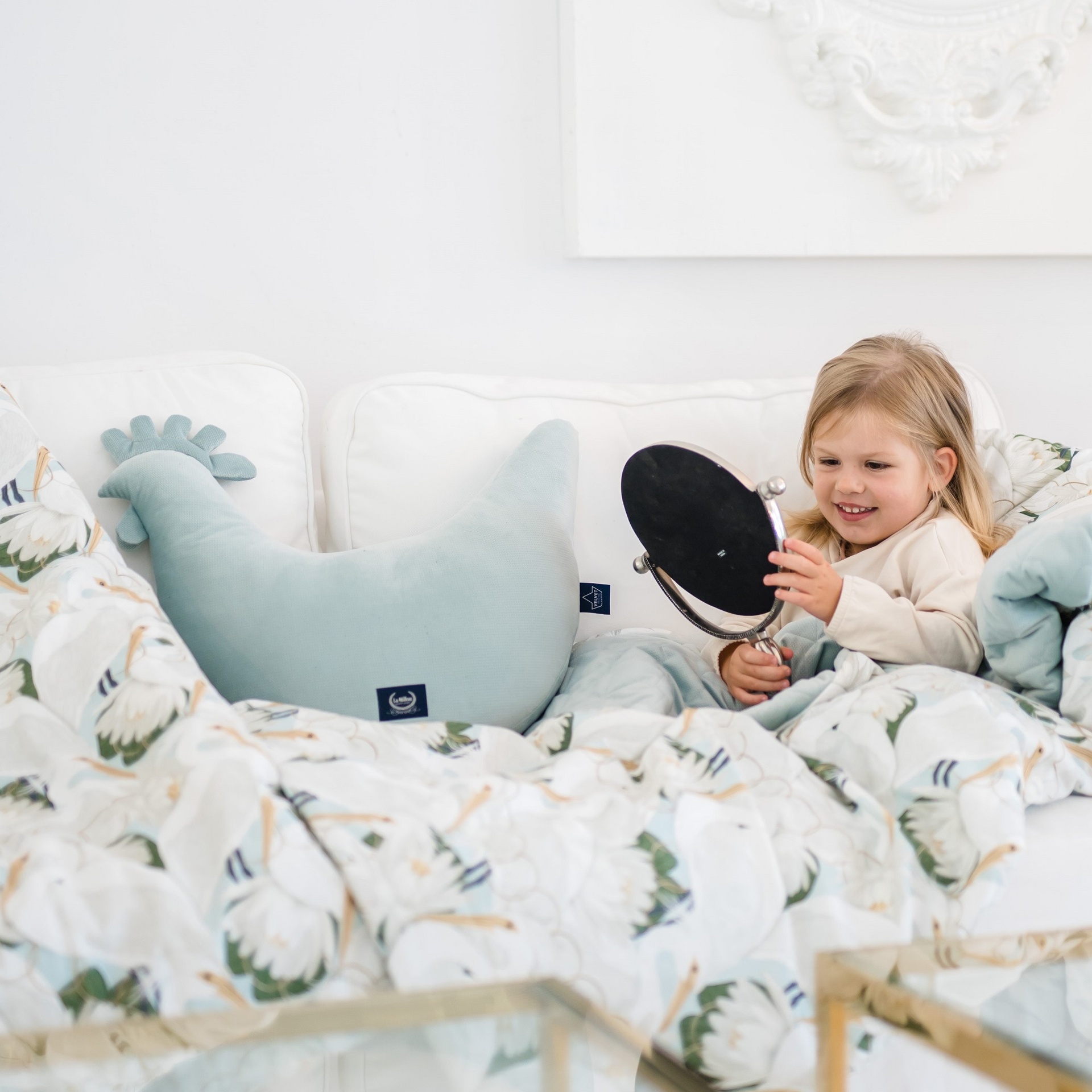 Močiutės Aksominė Pagalvėlė-Višta MĖTINĖ – minkšta, elastinga ir universalus pagalvėlė, kuri taps nepakeičiamu kompanionu tiek namuose, tiek kelionėse. Močiutės Aksominė Pagalvėlė-Višta yra mūsų ikoninis produktas, kuris puikiai tinka įvairiems gyvenimo etapams: nuo nėštumo, poilsio ir miego, iki kūdikio maitinimo, žaidimų ar darbo prie nešiojamojo kompiuterio. Jos dizainas ne tik žaismingas ir mielas, bet ir funkcionalus, užtikrinantis komfortą kiekvienam šeimos nariui.
