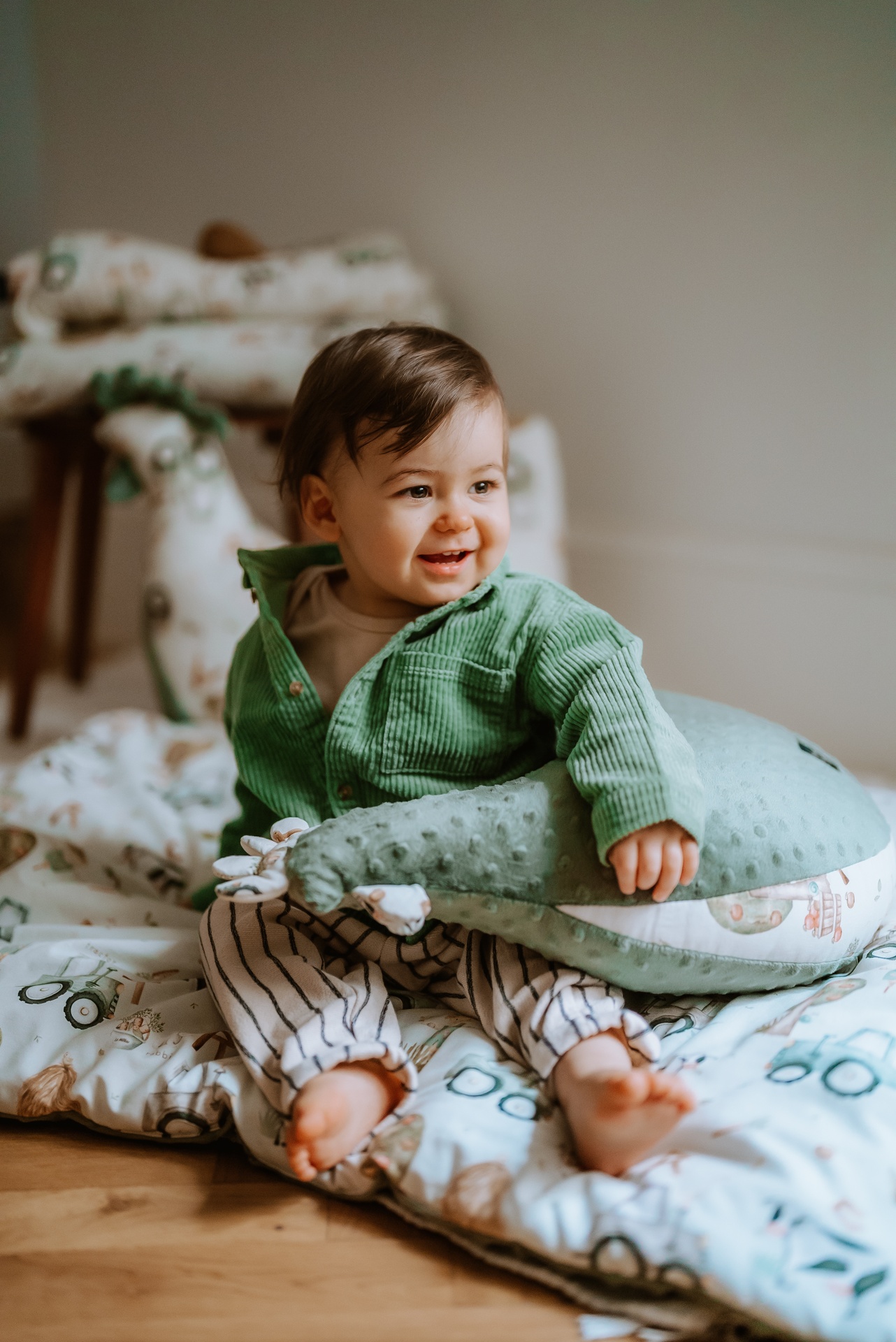 Pagalvėlė puikiai tinka nėštumo metu – kaip atrama pilvui, nugarai ar kojoms. Po gimdymo ji tampa ideali pagalve kūdikio maitinimui krūtimi arba buteliuku, padeda palaikyti patogią kūdikio poziciją ir sumažina nugaros ar rankų įtampą. Be to, pagalvėlė yra puikus pagalbininkas žaidimų metu, poilsiui ar kelionėse – galima naudoti kaip kelioninę atramą arba net kaip pagalvę darbui su nešiojamuoju kompiuteriu. Jos dydis ir forma leidžia patogiai nešiotis ir naudoti bet kur.