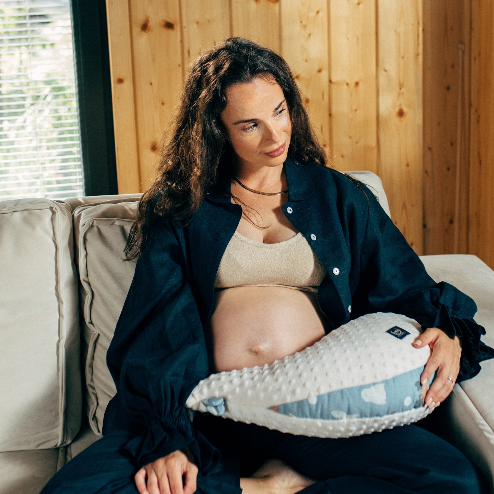 Pagalvėlė puikiai tinka nėštumo metu – kaip atrama pilvui, nugarai ar kojoms. Po gimdymo ji tampa ideali pagalve kūdikio maitinimui krūtimi arba buteliuku, padeda palaikyti patogią kūdikio poziciją ir sumažina nugaros ar rankų įtampą. Be to, pagalvėlė yra puikus pagalbininkas žaidimų metu, poilsiui ar kelionėse – galima naudoti kaip kelioninę atramą arba net kaip pagalvę darbui su nešiojamuoju kompiuteriu. Jos dydis ir forma leidžia patogiai nešiotis ir naudoti bet kur.