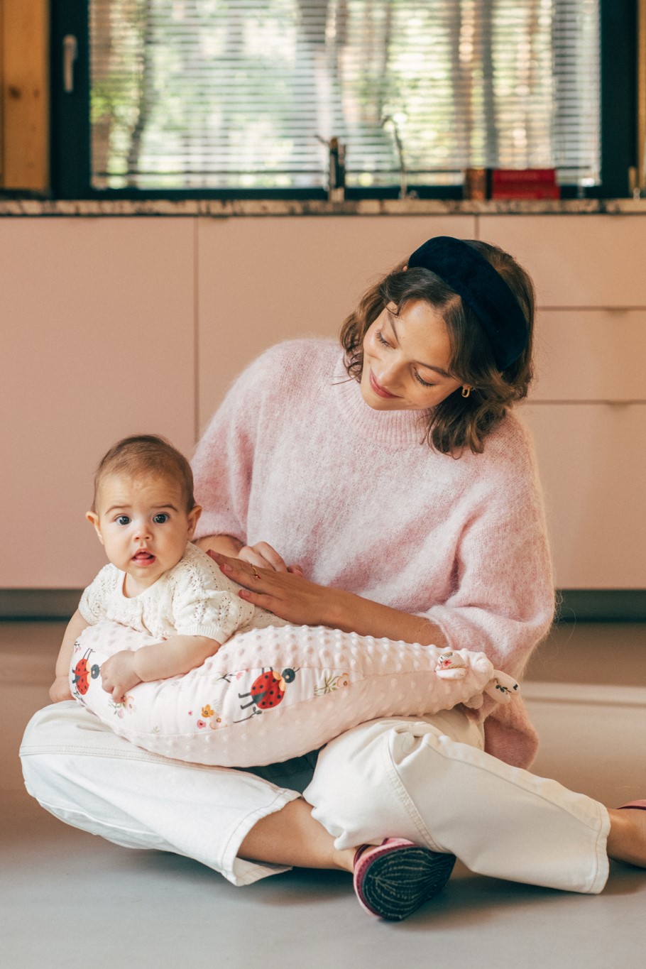 Pagalvėlė puikiai tinka nėštumo metu – kaip atrama pilvui, nugarai ar kojoms. Po gimdymo ji tampa ideali pagalve kūdikio maitinimui krūtimi arba buteliuku, padeda palaikyti patogią kūdikio poziciją ir sumažina nugaros ar rankų įtampą. Be to, pagalvėlė yra puikus pagalbininkas žaidimų metu, poilsiui ar kelionėse – galima naudoti kaip kelioninę atramą arba net kaip pagalvę darbui su nešiojamuoju kompiuteriu. Jos dydis ir forma leidžia patogiai nešiotis ir naudoti bet kur.