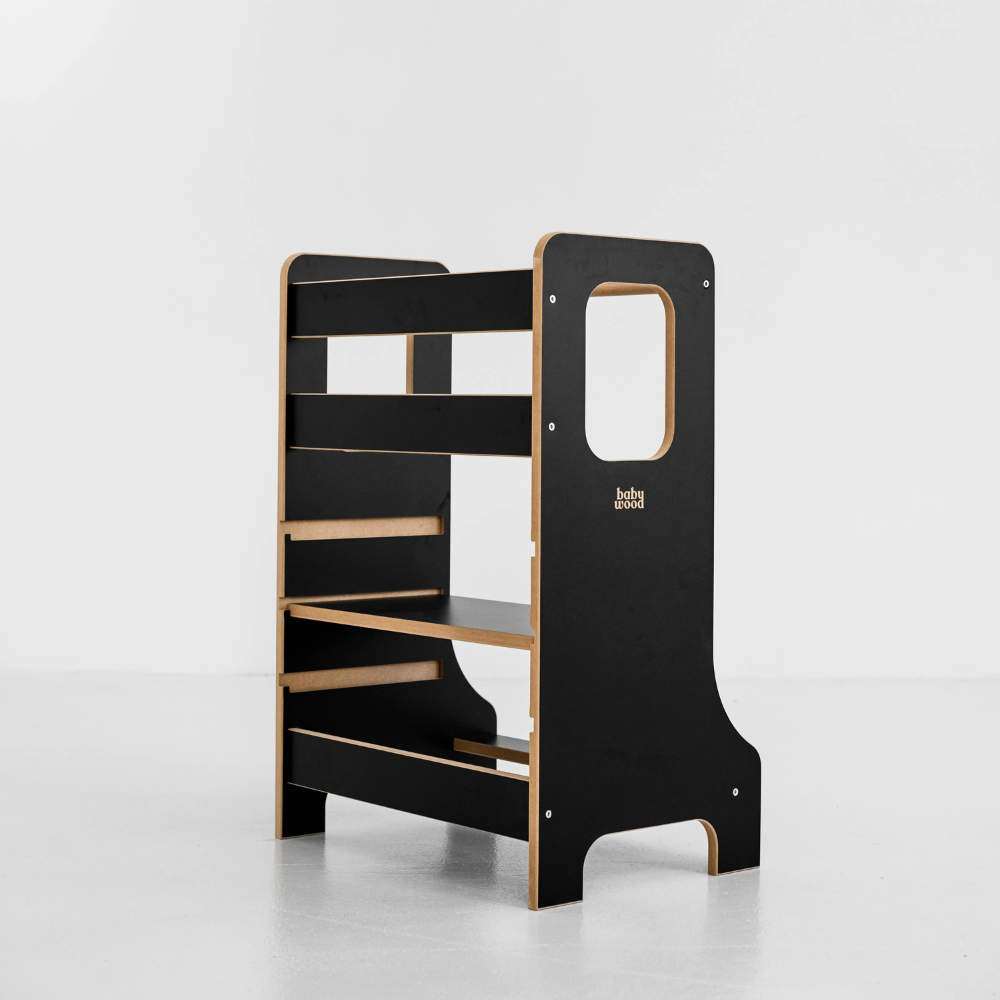 Pagamintas iš aukštos kokybės beržo faneros, šis bokštelis turi tris reguliuojamus platformos aukščius (23 cm, 34 cm, 45 cm), todėl lengvai prisitaiko prie vaiko ūgio. Tai reiškia, kad jis bus naudojamas ilgą laiką, nes mažylis galės patogiai pasiekti stalviršį augdamas.