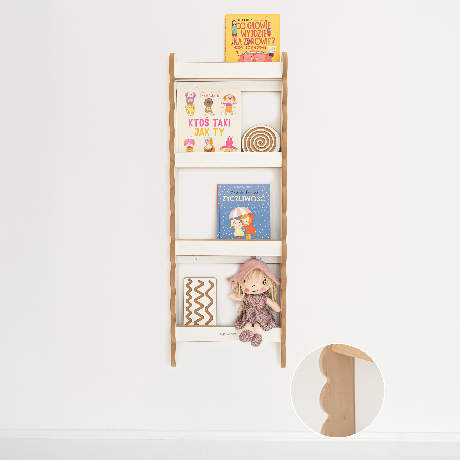 Montessori Sieninė Lentyna Knygoms BUBBLE Midi – tai praktiškas ir estetiškas sprendimas, padedantis palaikyti tvarką vaiko kambaryje ir kartu skatinti savarankiškumą. Pakabinta tinkamame aukštyje, ji leidžia vaikui pačiam pasiekti savo mėgstamas knygas, pasirinkti jas pagal nuotaiką ir po skaitymo padėti atgal į vietą.