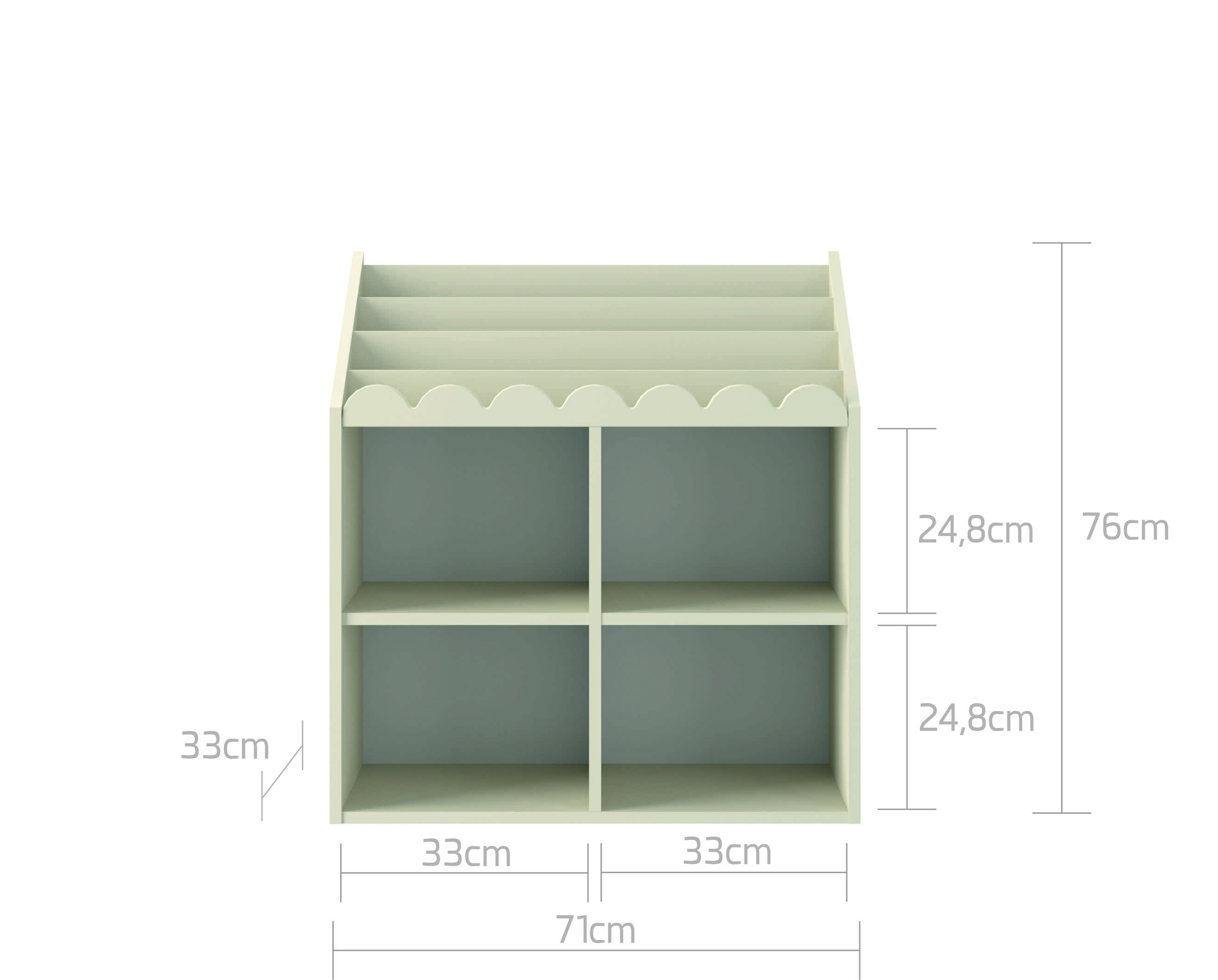 • Tvarka ir aiški struktūra – knygos viršuje, žaislai apačioje
