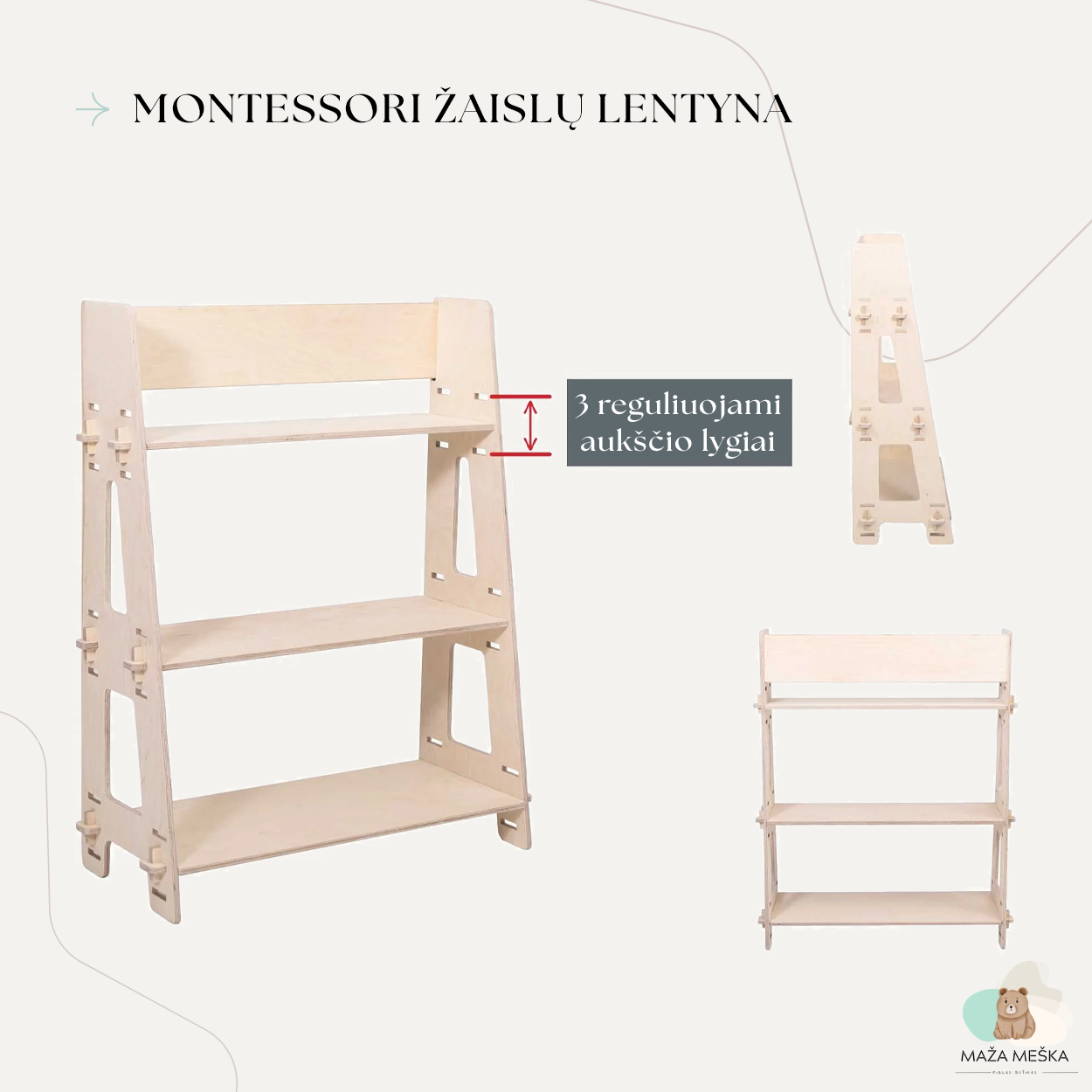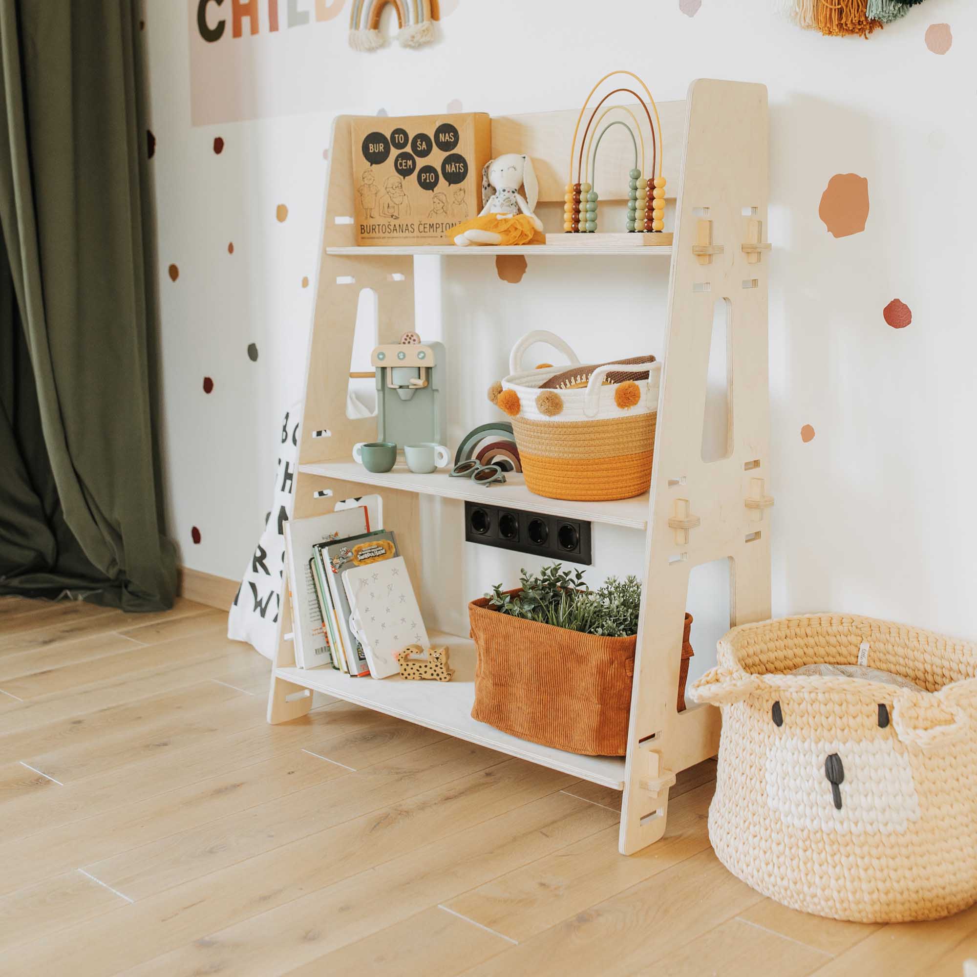 Montessori įkvėpta lentyna skatins mažuosius rūpintis savo daiktais.