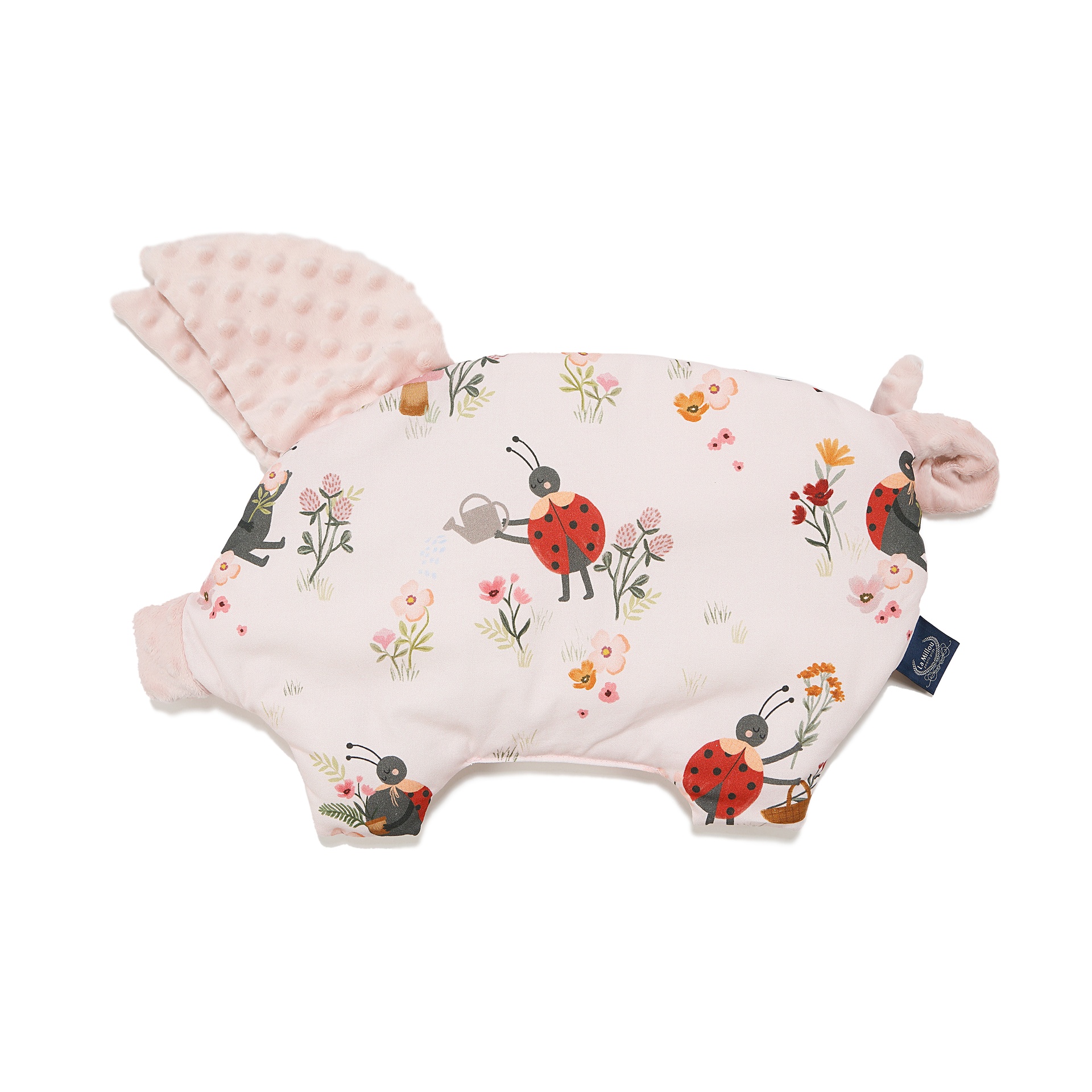 Pagalvėlės unikalus dizainas su žaviomis paršelio ausytėmis ir uodegėle, ne tik suteikia malonų prisilietimą, bet ir tampa puikiu žaisliuku, skatinančiu sensorinį lavinimą ir rankų miklumą. Kūdikis gali lengvai suimti ausis ar uodegėlę, lavindamas koordinaciją ir smulkiąją motoriką žaidimo metu. Dėl savo kompaktiško dydžio ir plokščio užpildo, pagalvėlė puikiai tinka tiek namuose, tiek kelionėse. Lengvai tilps vežimėlyje ar lopšyje, neapsunkindama kūdikio judesių.