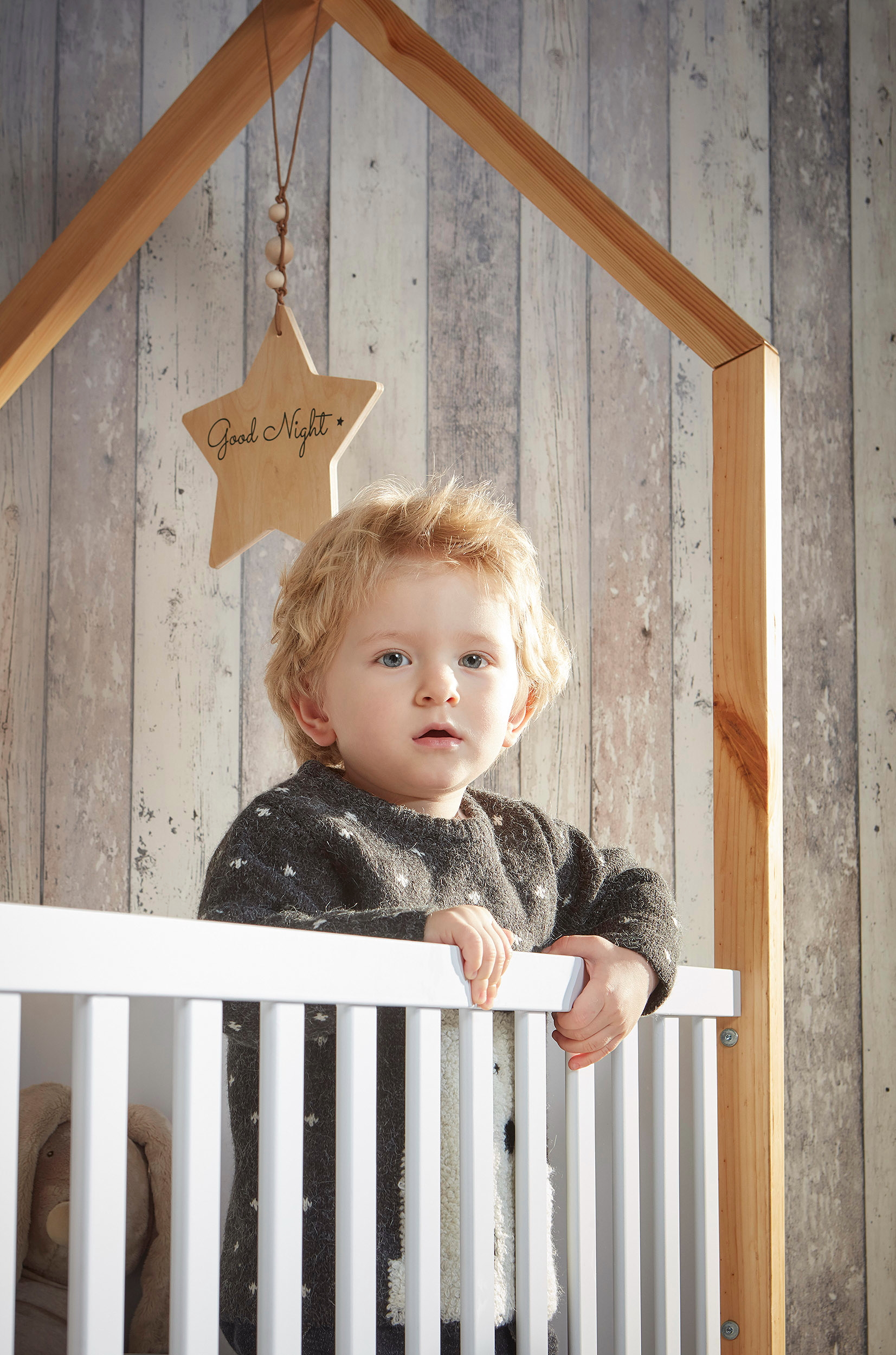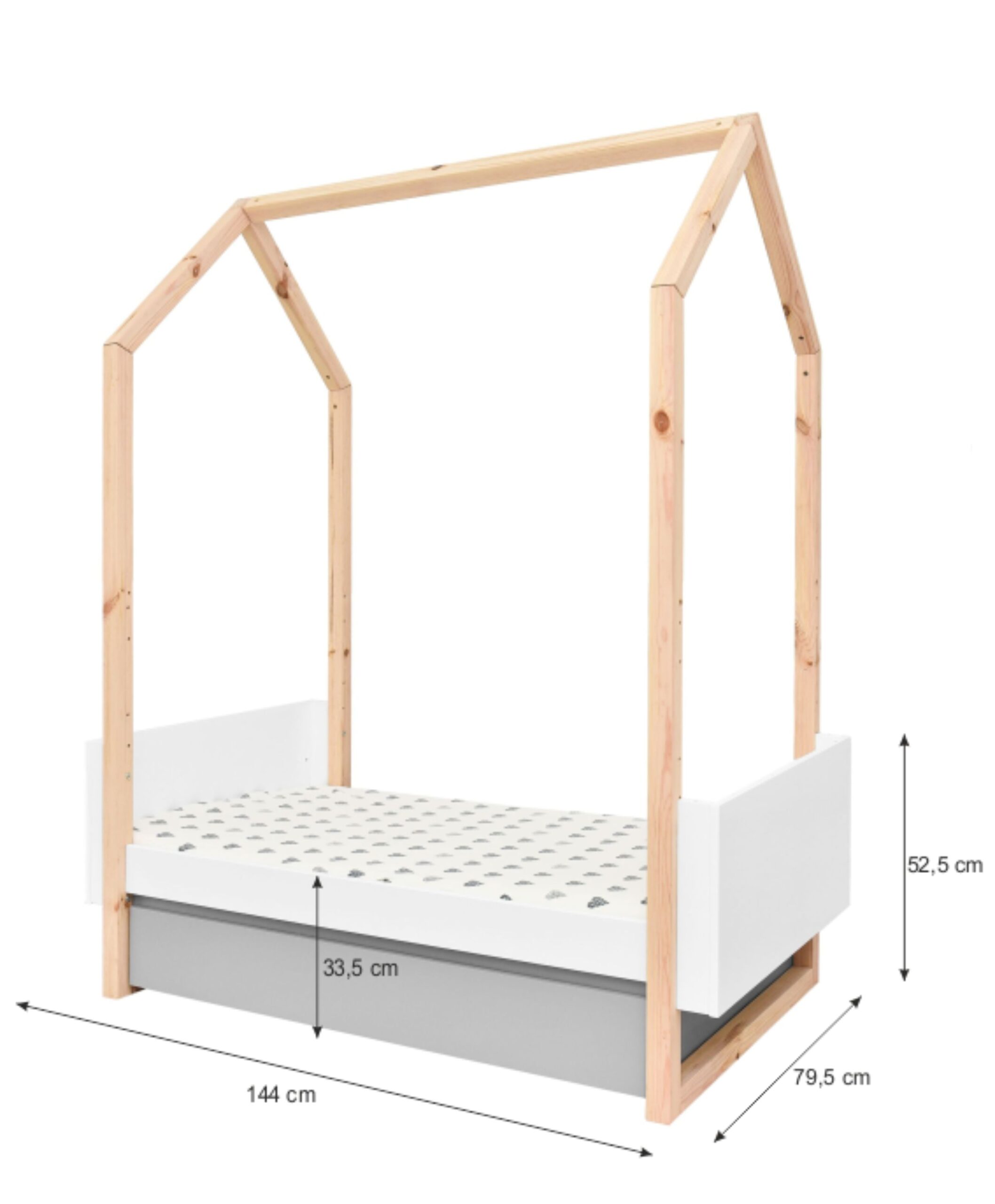 Lovelė išsiskiria namelio formos medine konstrukcija. Ji ne tik puošia kambarį, bet ir skatina žaidimą bei kūrybiškumą. Namelis gali tapti fėjos nameliu, meškiukų gyvenviete, piratų laivu ar slėptuve. Viskas priklauso nuo vaiko vaizduotės. 🏡