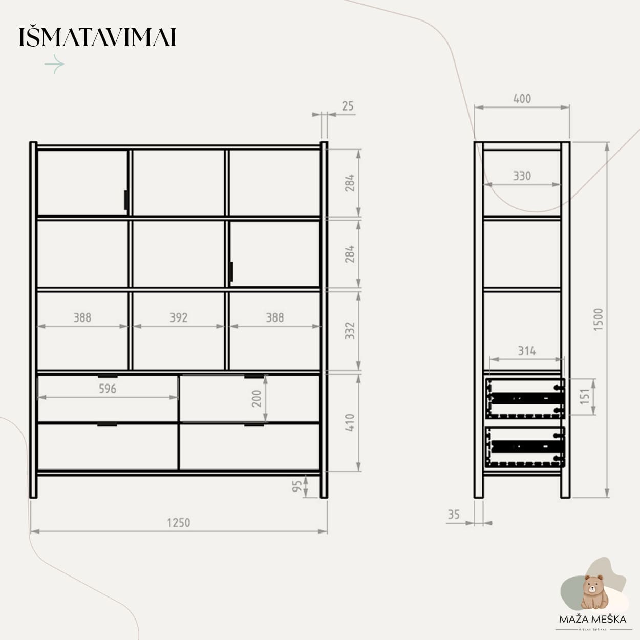 Atviros lentynos ir stalčiai skatina kūrybiškumą, leidžia eksponuoti mėgstamus daiktus.
